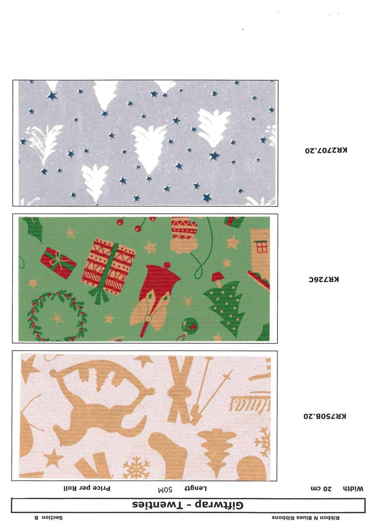 The wraps are grouped via designs and themes but do indicate the price code letter so you can be aware of this. A indicates from From the East and all other papers are either made in Europe or if indicated printed in New Zealand. Trust Icons are on each page to promote awareness of the environmental qualities and sustainability of our products.