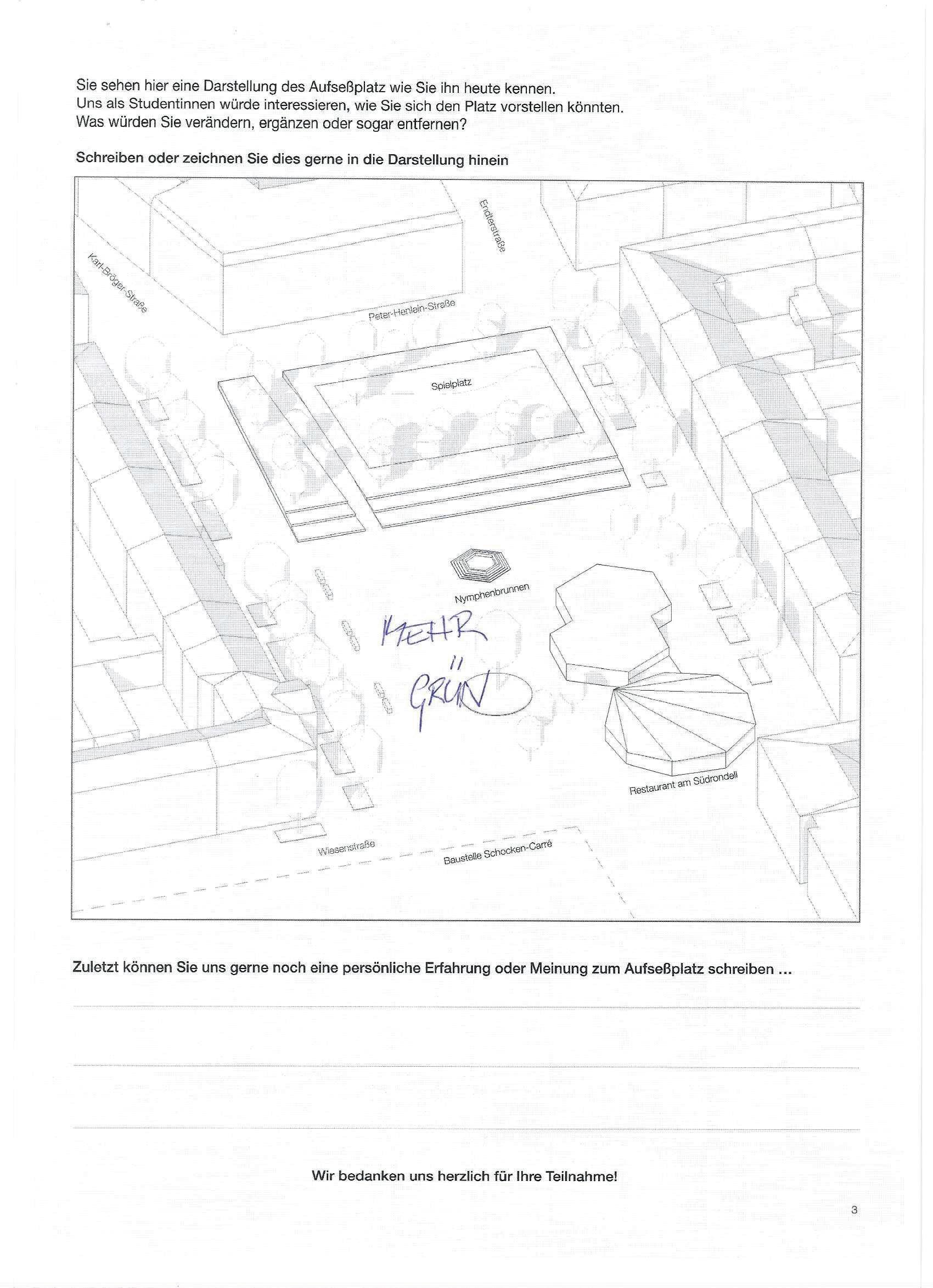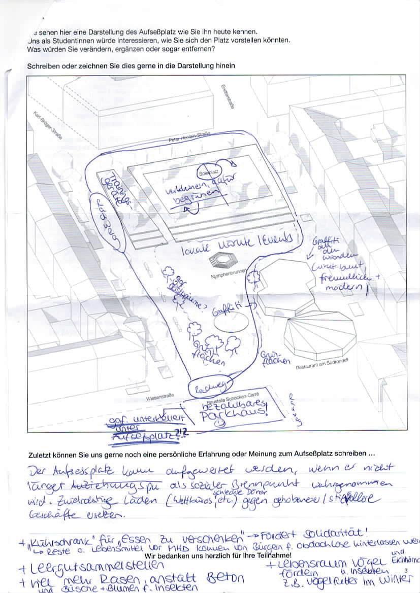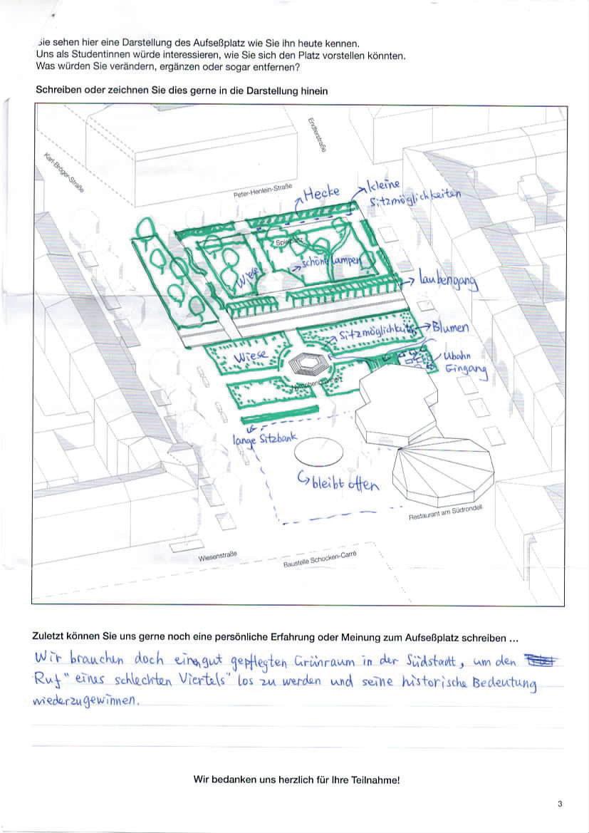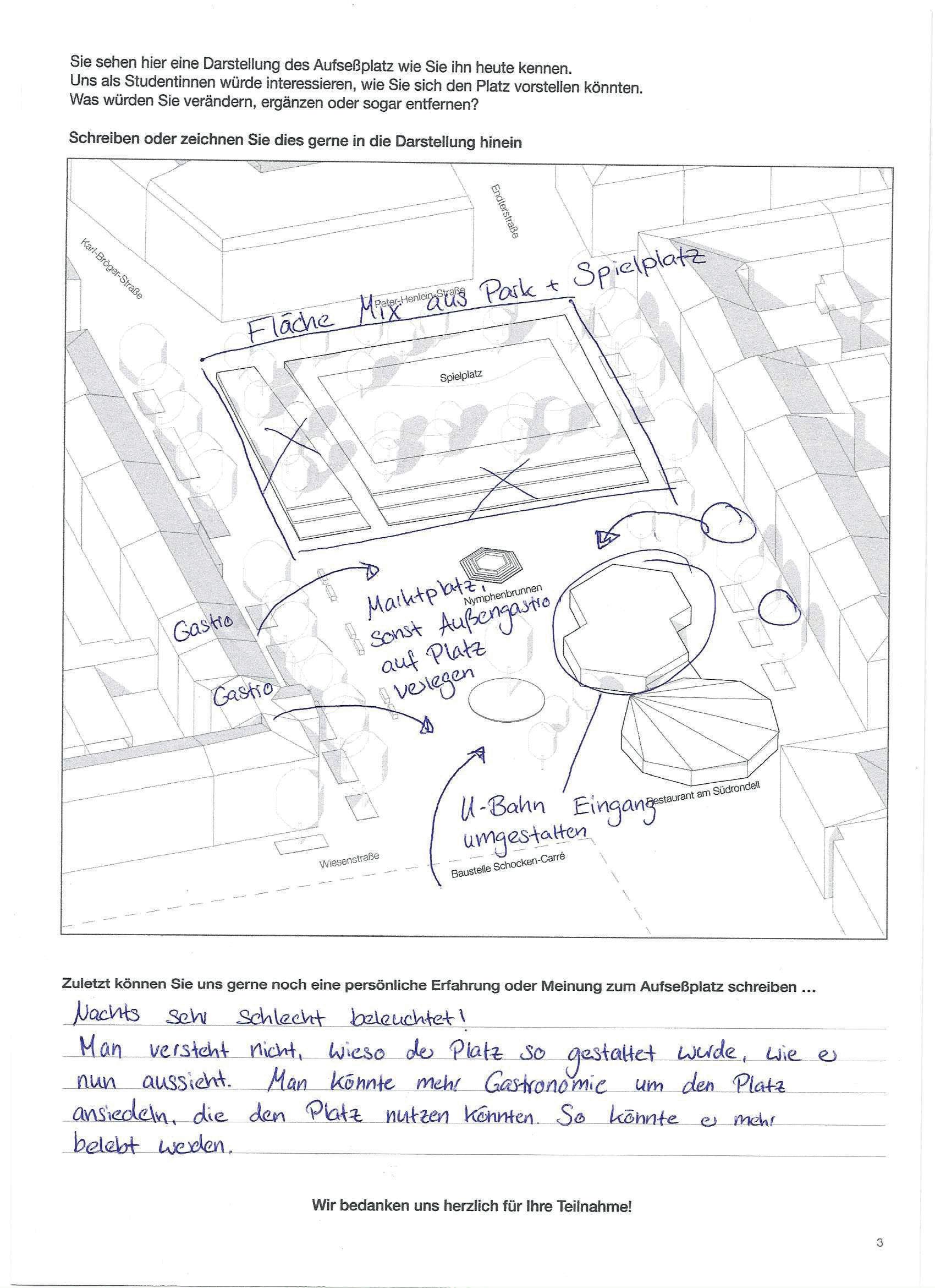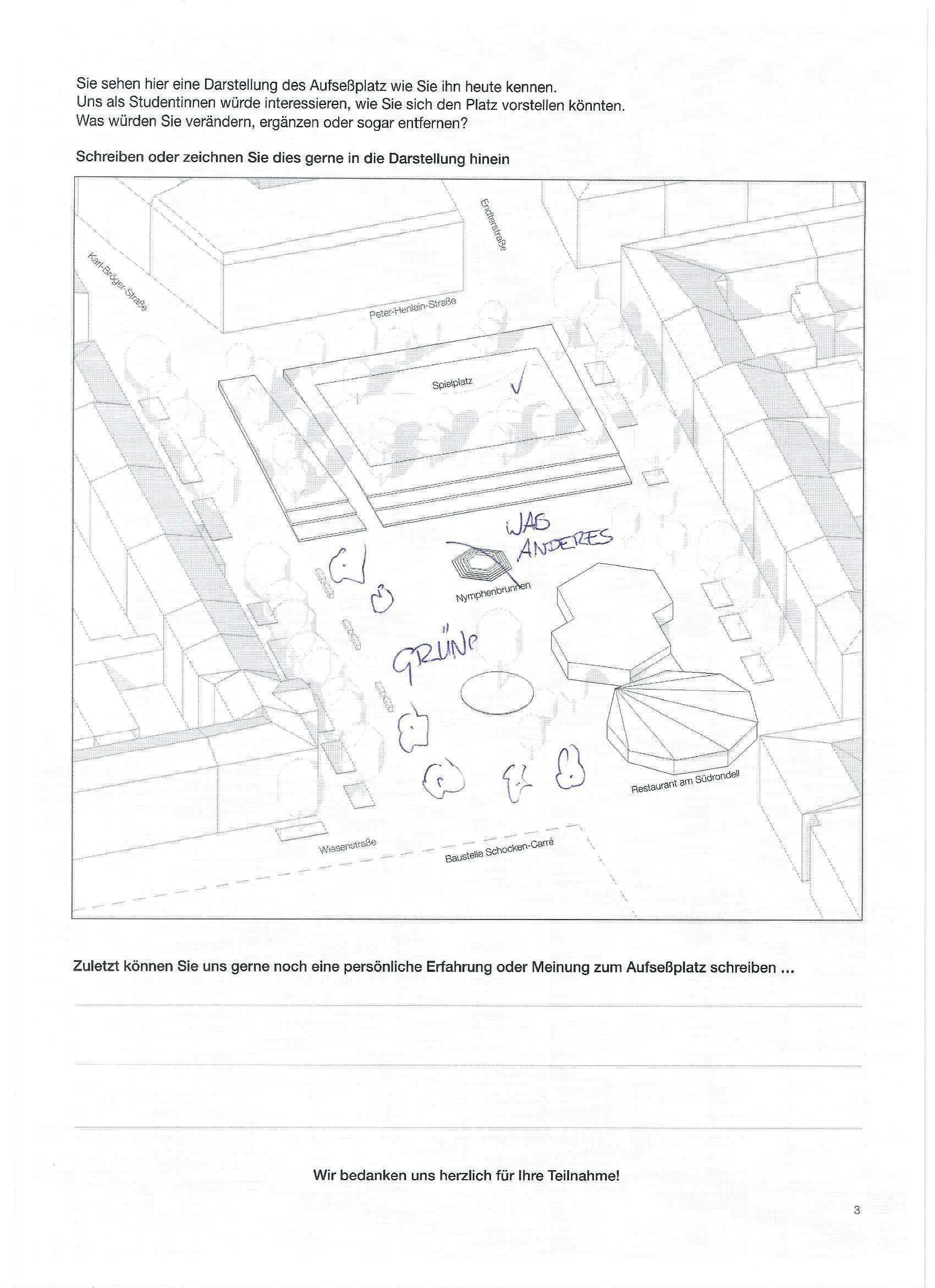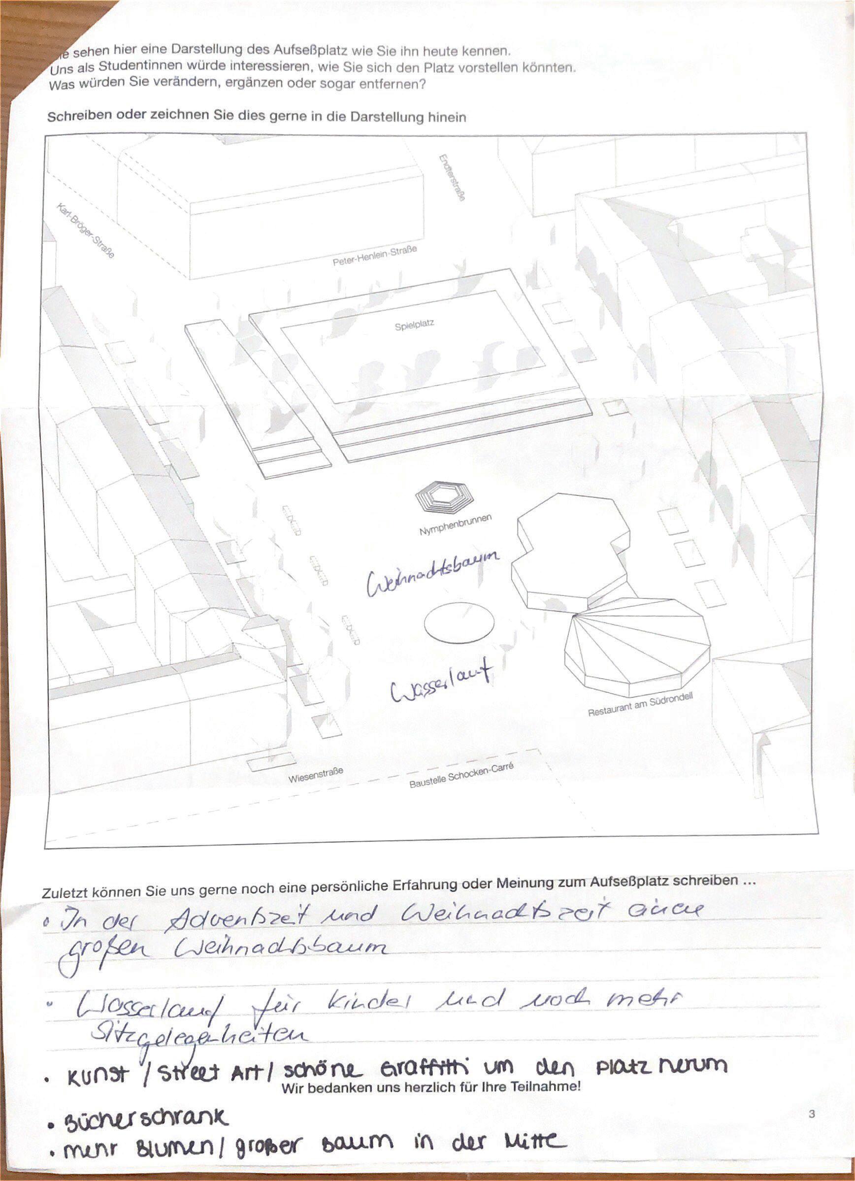 Auf der letzten Seite der Beteiligung konnten die Teilnehmenden eigene Gestaltungswünsche beschreiben und einzeichnen