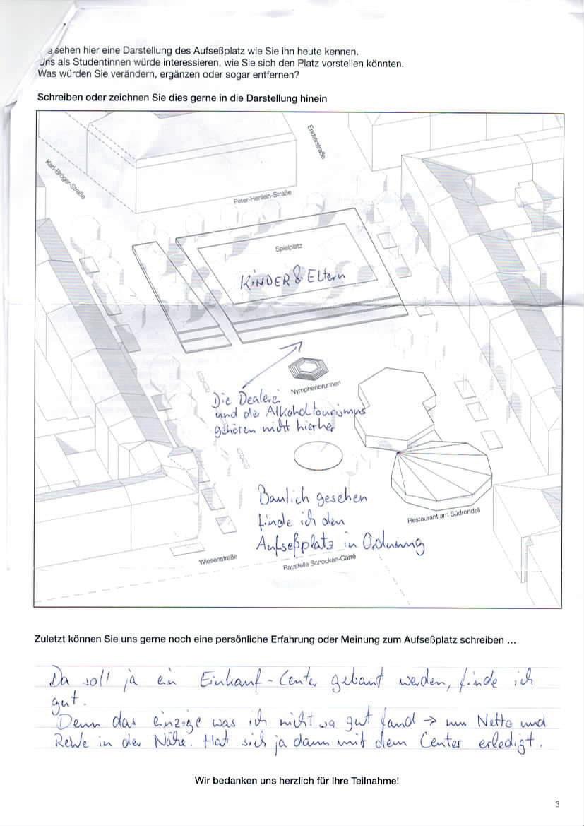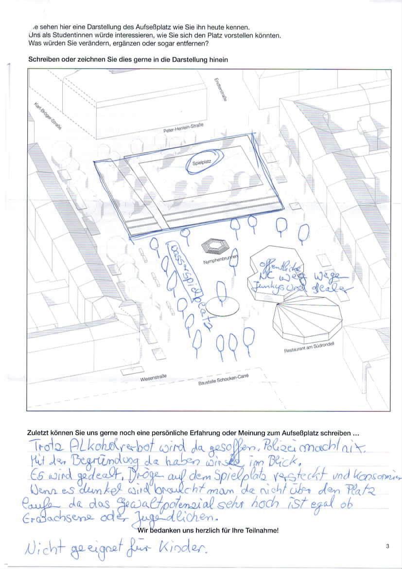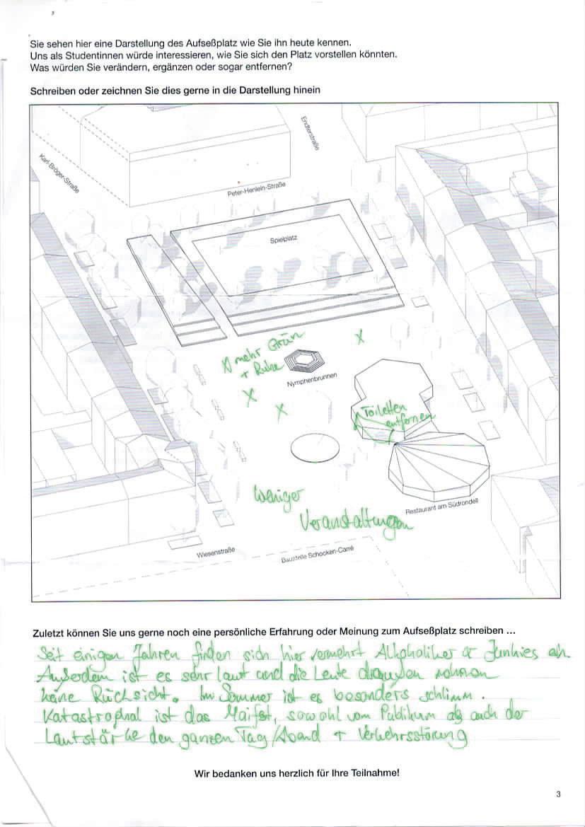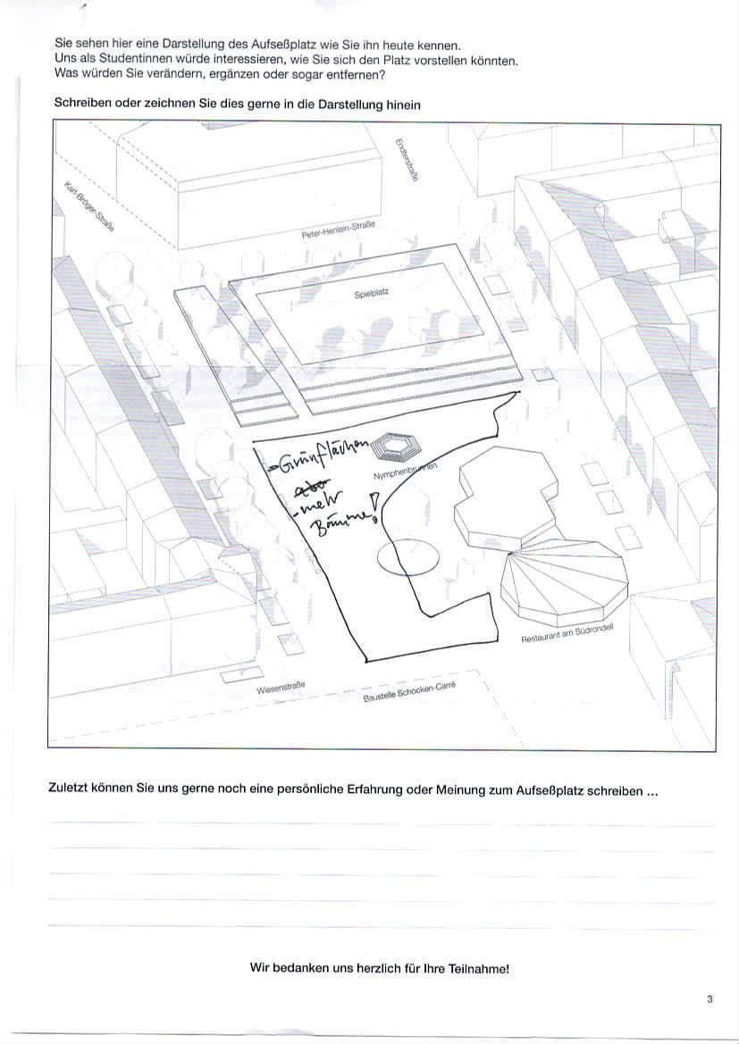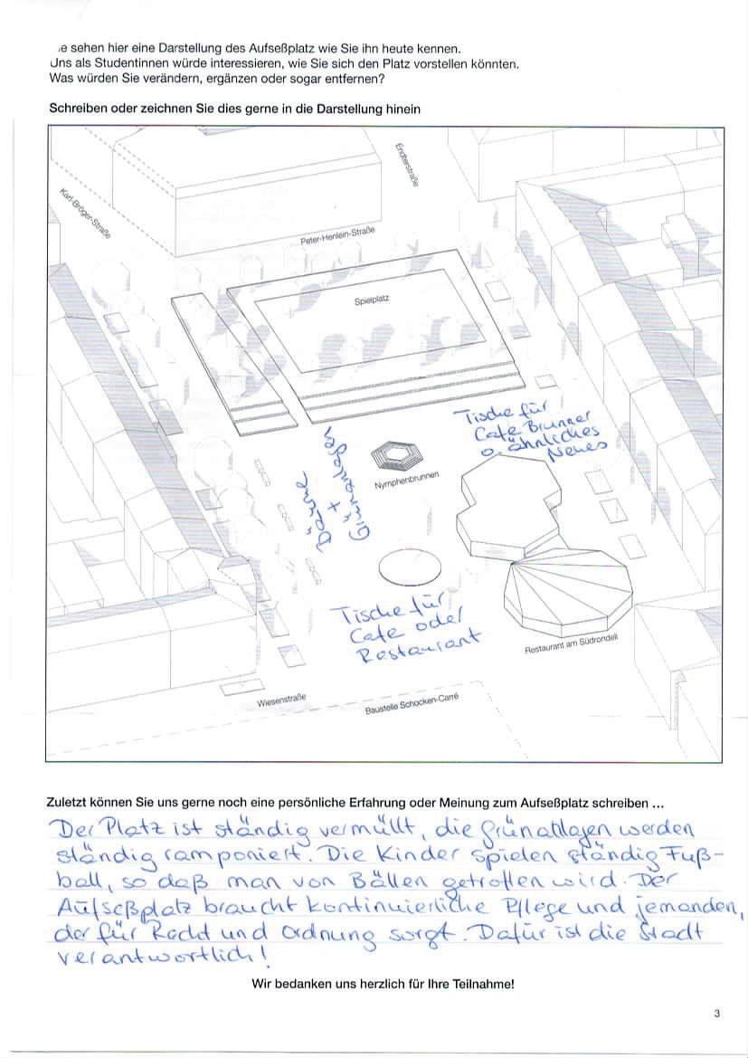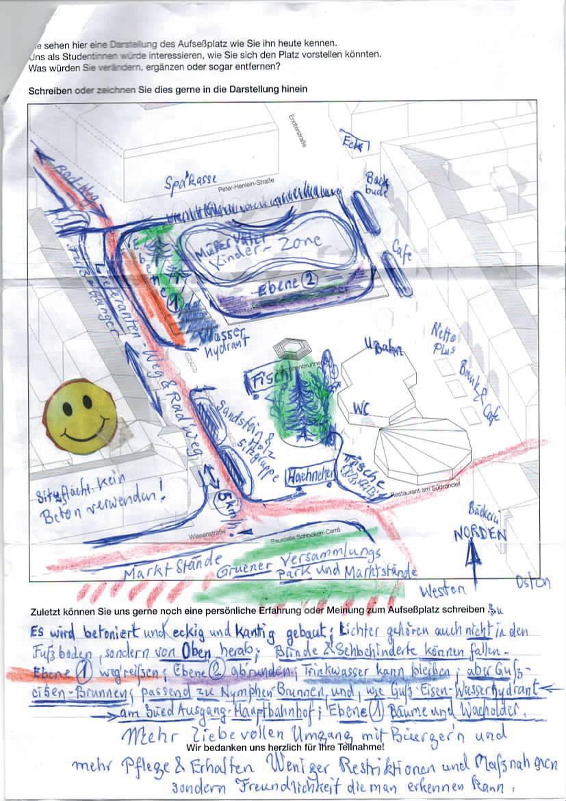 Auf der letzten Seite der Beteiligung konnten die Teilnehmenden eigene Gestaltungswünsche beschreiben und einzeichnen