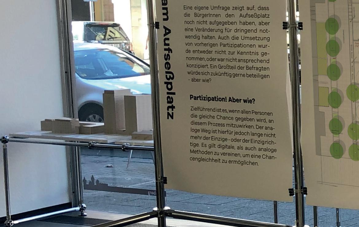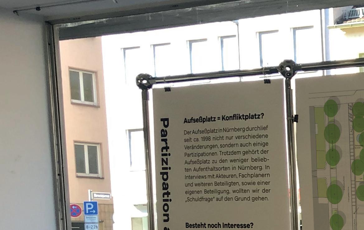 Der Aufseßplatz in Nürnbergs Südstadt durchlief im Laufe der Jahre seit den 90er Jahren bereits einige Veränderungen. Für einige von diesen wurde auch eine Bürger*innenbeteiligung initiiert. Dennoch ist dieser öffentliche Platz weiterhin einer der unbeliebtesten in Nürnberg. In dem Masterprojekt wurde dem Thema Partizipation und der Frage der Transparenz von Planungshintergründen nachgegangen. Hierfür wurden Interviews mit Akteuren und Anwohnenden geführt, sowie eine eigene Kurzbeteiligung gestaltet.