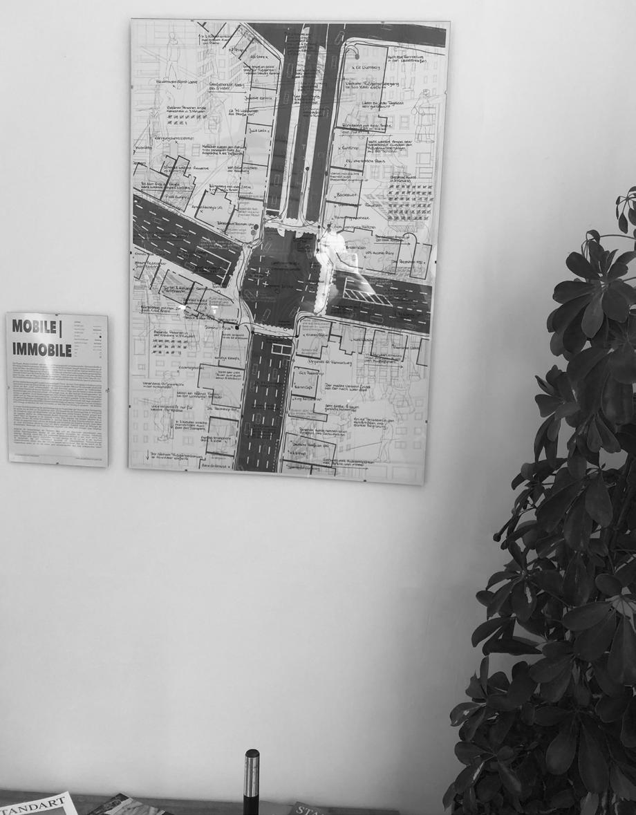Das Projekt „Mobile | Immobile“ setzt sich mit dem Kreuzungspunkt Landgrabenstraße | Gibitzenhofstraße in Nürnbergs Südstadt auseinander. Als repräsentatives Abbild der Südstadt, spiegelt dieser Kreuzungspunkt, als einer von Vielen, das wahre Leben in der Südstadt wieder. Nicht nur dient ein solcher Punkt als Verbindung von Straßen, oder nur der Überquerung - er kann auch als Treffpunkt, Einkaufsort oder zum verweilen genutzt werden. Ob es der Einkauf nach der Arbeit ist, der Café und Kuchen - Treff im alt-bekannten Bäcker mit den Freundinnen jeden Sonntag, oder der Weg zum einzigen Dönerladen bei welchem man mit „Hallo Chefin“ begrüßt wird - die Südstadt entwickelt an solchen Punkten ein Leben, welches für den Außenstehenden kaum zu erkennen ist.