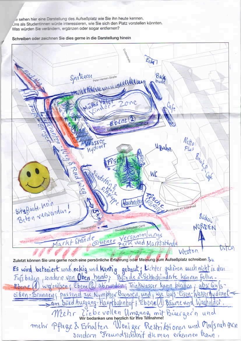 In dieser Umfrage konnten Teilnehmende eigene Gestaltungswünsche beschreiben und einzeichnen