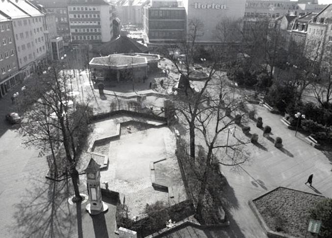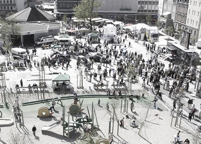Aufseßplatz sollte Marktplatz und Mittelpunkt der Südstadt werden, wie der Hauptmakrt der Altstadt. War dafür gedacht ein Zentrum für die Anwohner'innen zu schaffen und Veranstaltungen in die Südstadt zu bringen