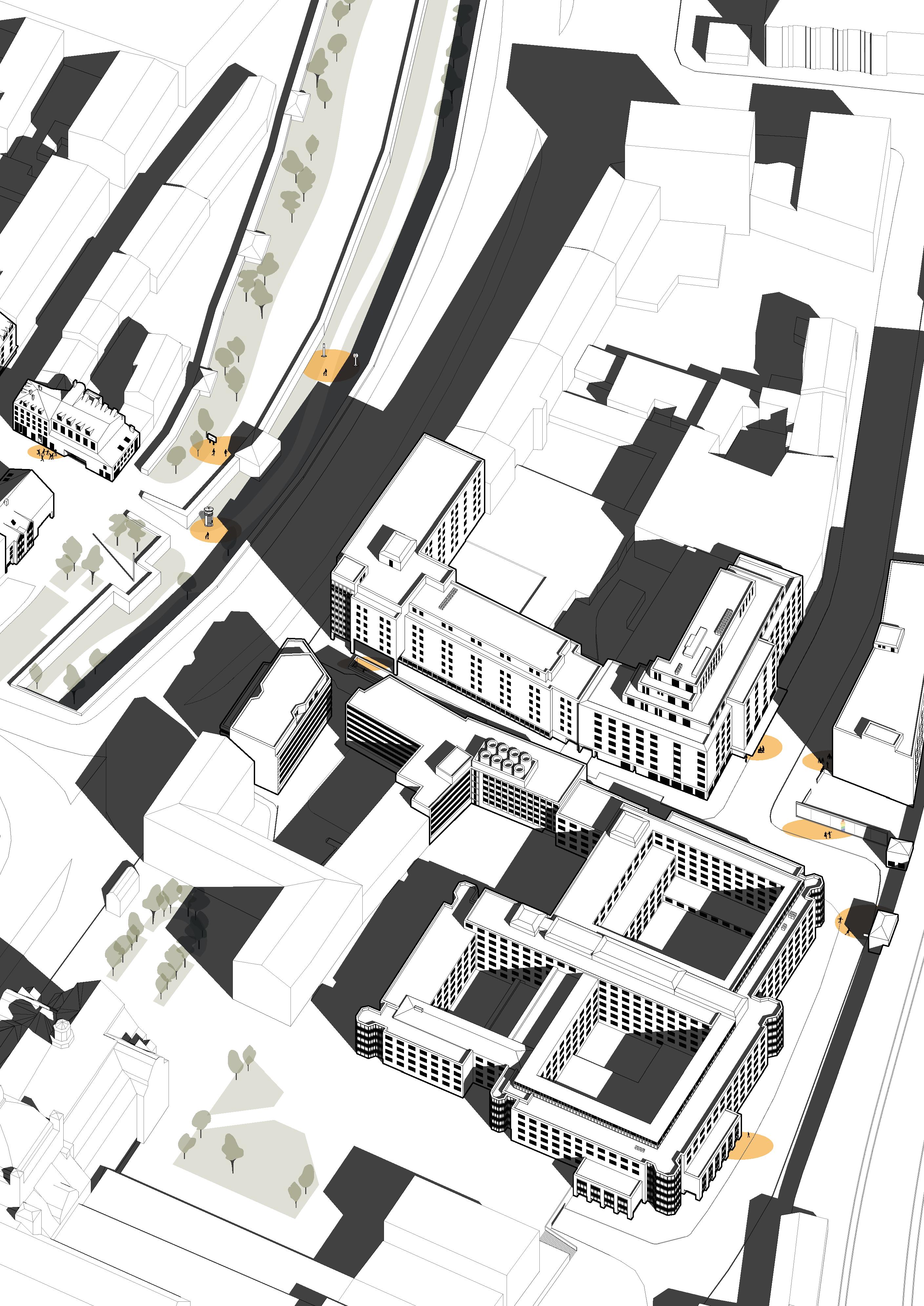 Alle Gestaltungsideen der Teilnehmenden wurden in ein städtebauliches Modell übersetzt und der Stadt Nürnberg, sowie den beteiligten Akteur*innen präsentiert