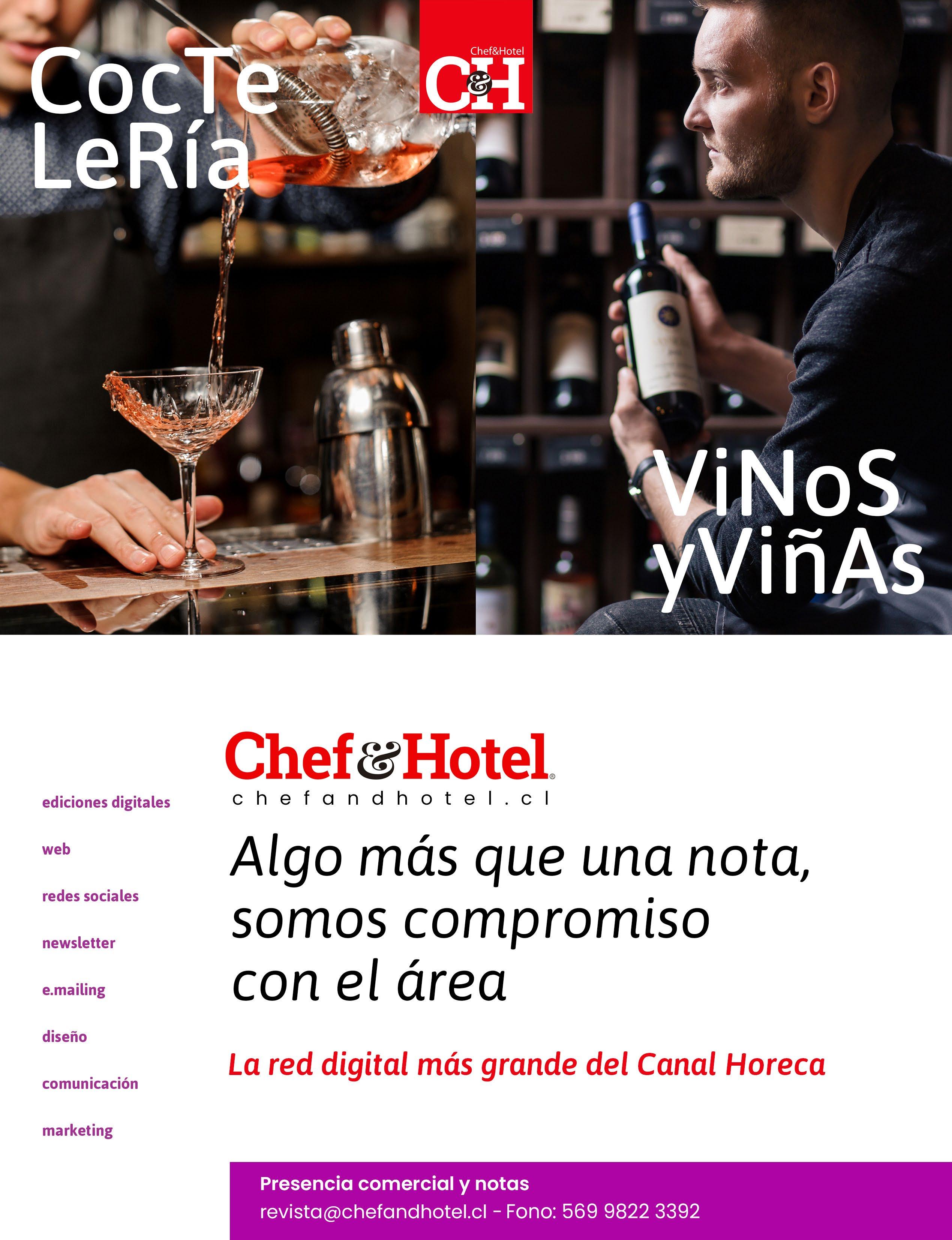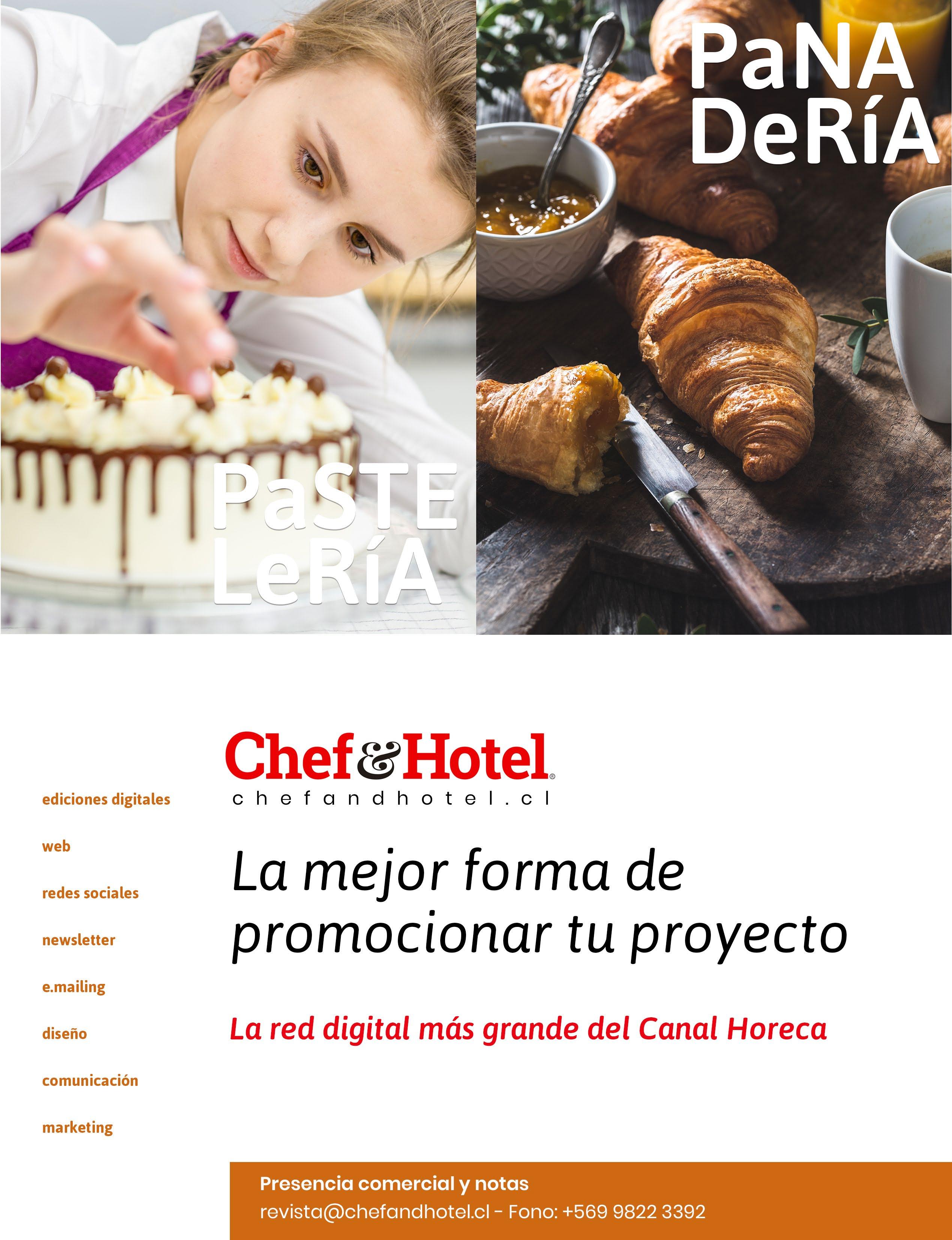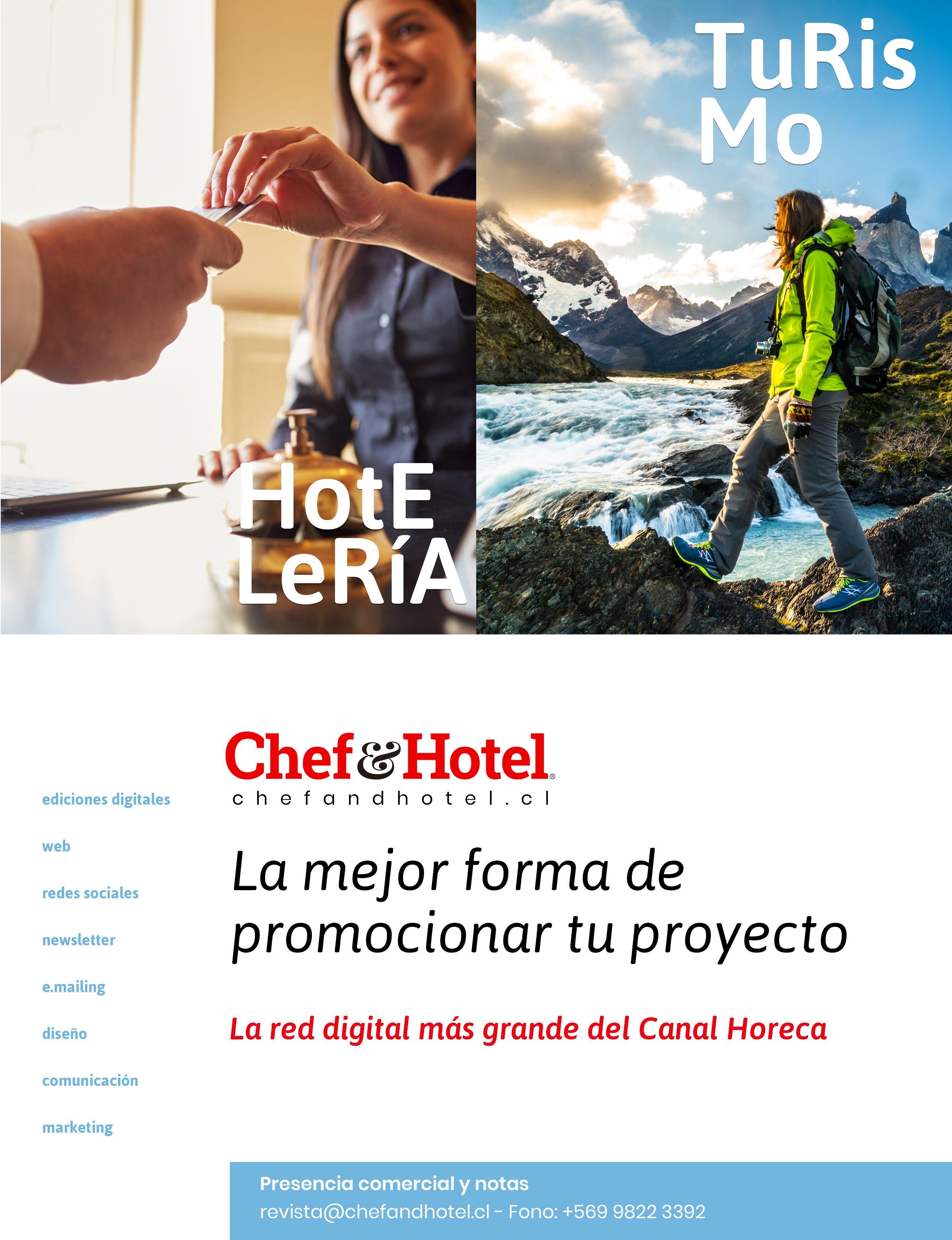 Revista Chef&Hotel publicación profesional independiente de hotelería, gastronomía y turísmo en versión digital con una entrega mensual a más de 16.000 contactos relacionados con el área. Difundida por web, redes sociales y newsletter directo a gerentes, chefs, dueños y administradores, etc., responsables de las decisiones de compra en hoteles y otros tipos de alojamientos, restaurantes, delivery, casinos, pastelerías, cafeterías, clínicas, operadores turísticos, agencias de turismo, empresas proveedoras, estudiantes, etc.