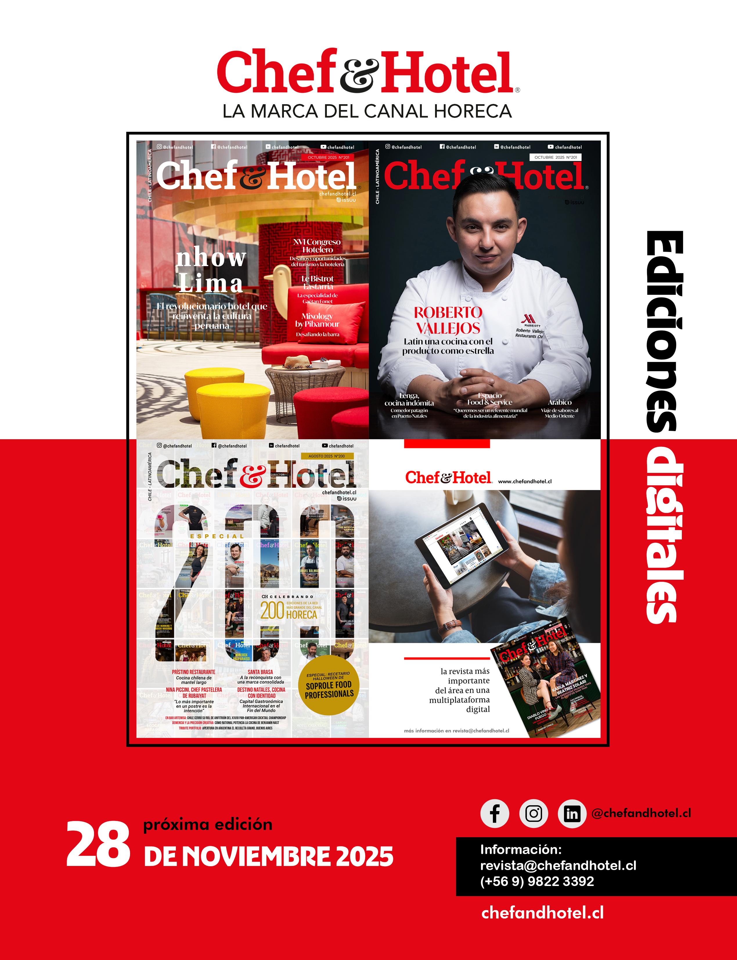 a sido un mes con muchas actividades que se reflejan en esta edición de 180 páginas, algo inédito en nuestros 23 años de publicaciones de Chef&Hotel recién cumplidos en octubre.