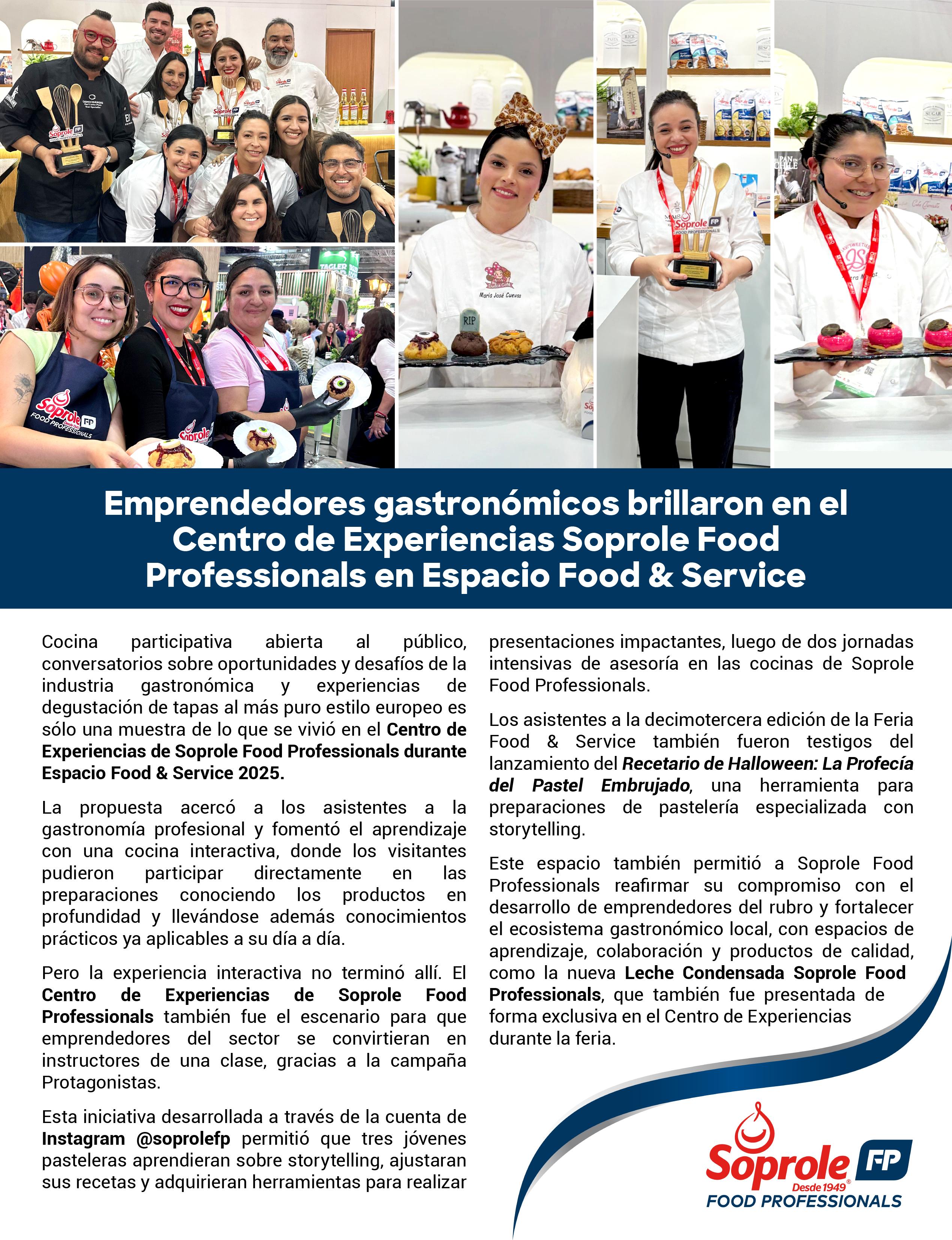 feria Espacio Food & Service que con su trabajo y productos se han destacado en tres categorías que son un aporte a la industria gastronómica: Aporte a la Innovación: Krünkcon con su producto Snacks Krünkis. Emprendimiento familiar femenino