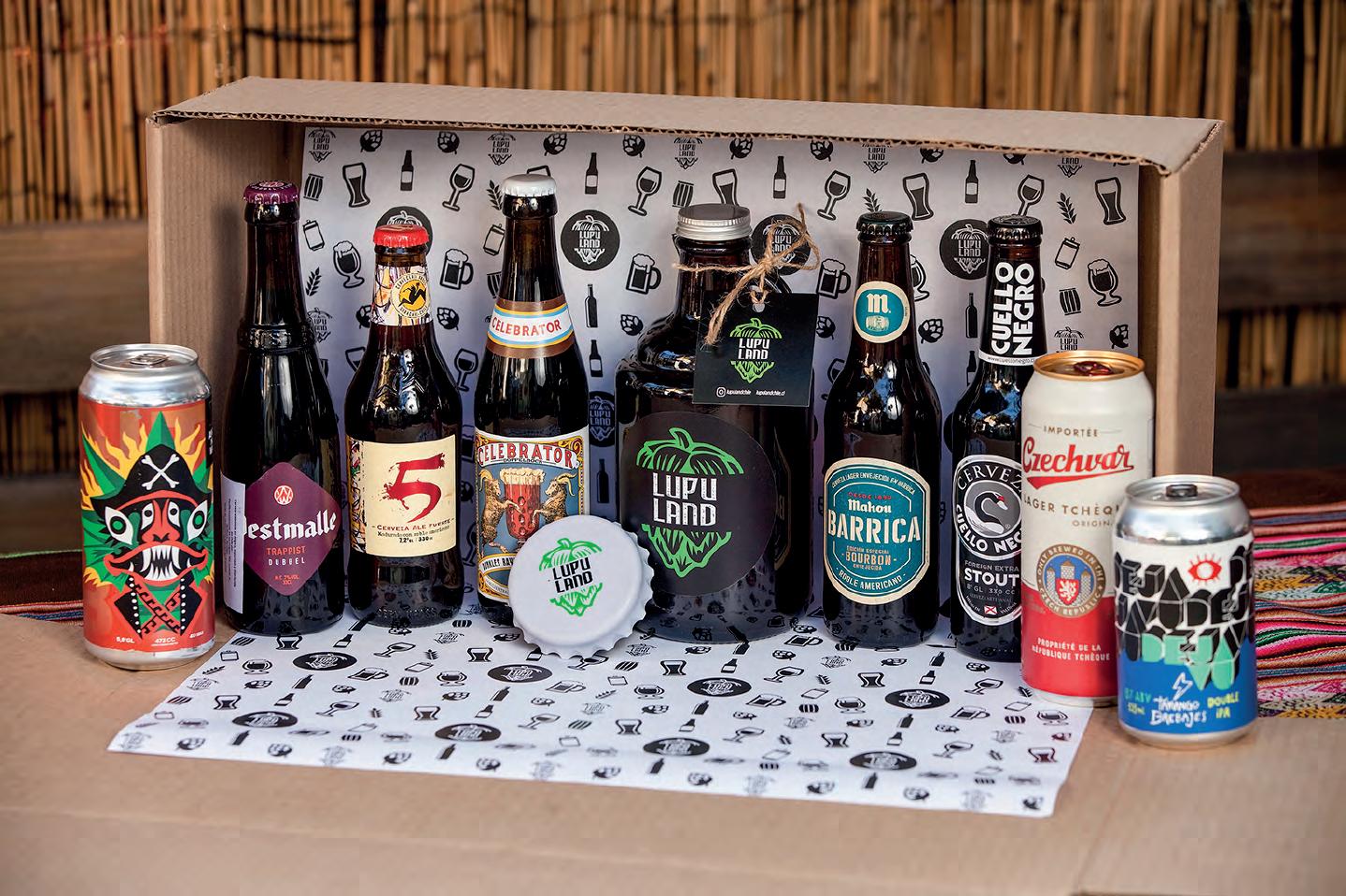 El siguiente paso lógico para Lupuland, a raíz de la pandemia y la consiguiente imposibilidad de hospedar gente o de llevar a cabo encuentros de maridaje y degustación, fue crear el concepto de cajas cerveceras y suscrip ciones llamado Elige tu talla. Se trata de sets de distinto tamaño y que pueden comprarse tanto en formato unitario como en suscripción, cada uno con un set que combina distintos tipos de cervezas.