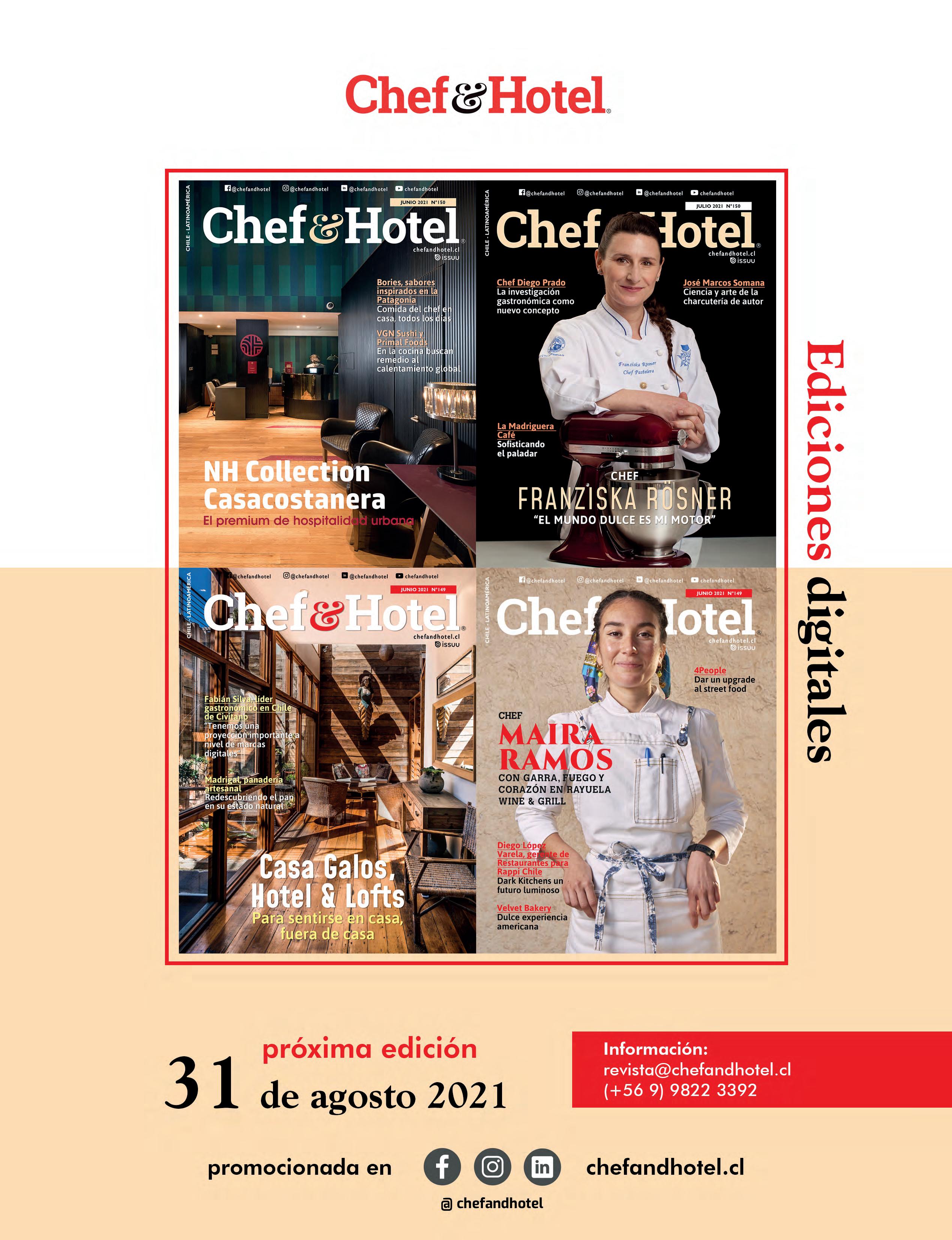Celular: (+569) 9822 3392 revista@chefandhotel.cl Pucará 5120, of 511 - Ñuñoa SUSCRIPCIONES (569) 9646 2380