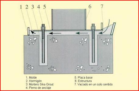 El edificio tiene Pilas de cimentacion y se conecta el acero al concreto con anclas como las que vemos en las fotos