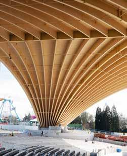 The world-class venue, known as the Freedom Mobile Arch, will feature a permanent stage, a threestorey back-of-house building, flexible seating and expansive lawn areas to host up to 10,000 guests for a wide range of programming. The massive roof arches elegantly over the audience, offering an openair experience that maximizes views of Vancouver’s North Shore Mountains.