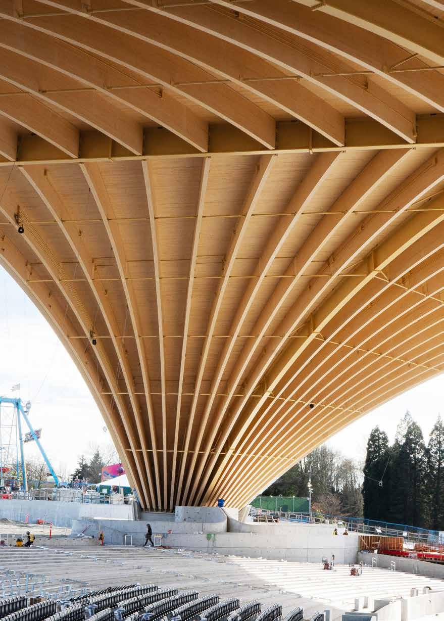 TThe goal was simple: replace an aging Vancouver outdoor amphitheatre to accommodate more concerts and events all year round. But building an extremely complex mass timber roof structure to achieve that goal was not.