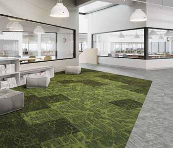 Another benefit carpet brings to the work place is the flexibility to create unique spac es that accommodate diverse work styles and preferences. While one employee may prefer a vibrant, open plan area where con versation and collaboration happen nat urally, another may desire a softer, cozy space similar to the home office they’ve become accustomed to over the past few years. Carpet can accommodate both ends of this spectrum and even be designed in ways that strengthen organizational cul ture, by adding logos or other graphical el ements.