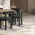 Warm white oak was specified in public and transitional zones, namely the central corridor that serves as a connective spine and living, dining and kitchenareas,allinasoftmattefinish.Itsreflectionofnaturallightpreserves the balance between brightness and restraint, reinforcing the home’sarchitectonic rhythm. A circular ombré rug in the living space dissolves from black to tan, echoing the gradient between furnishing and architecture.