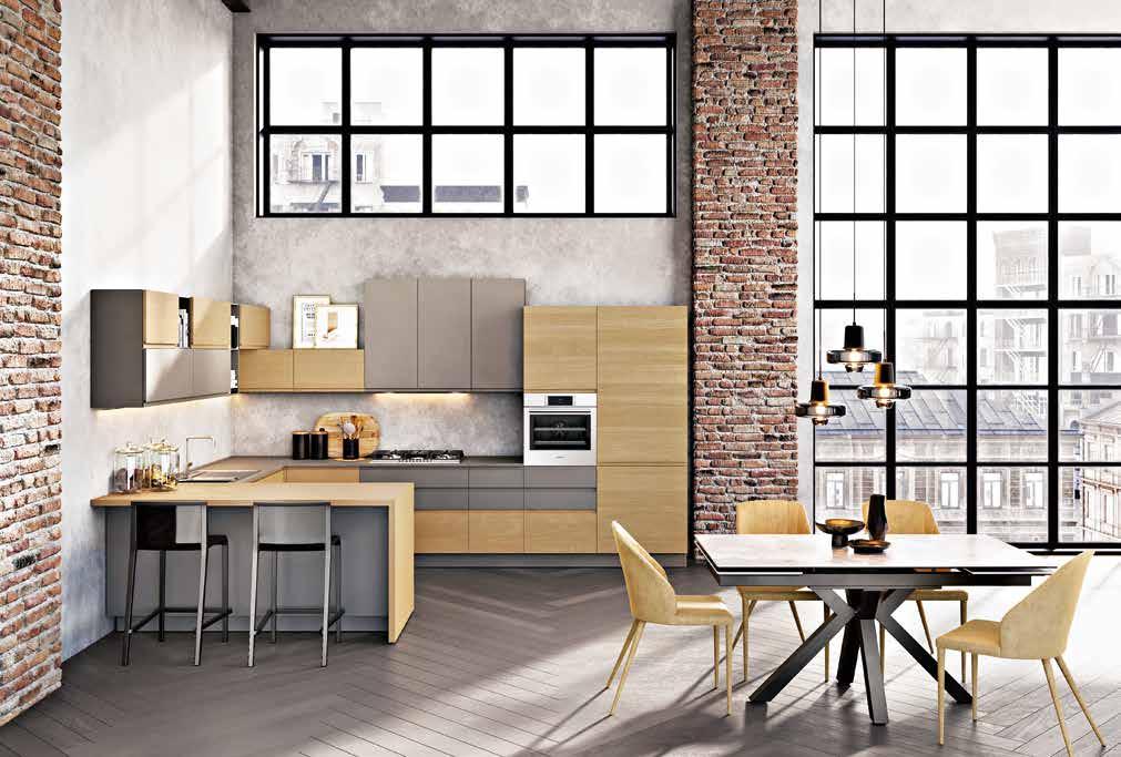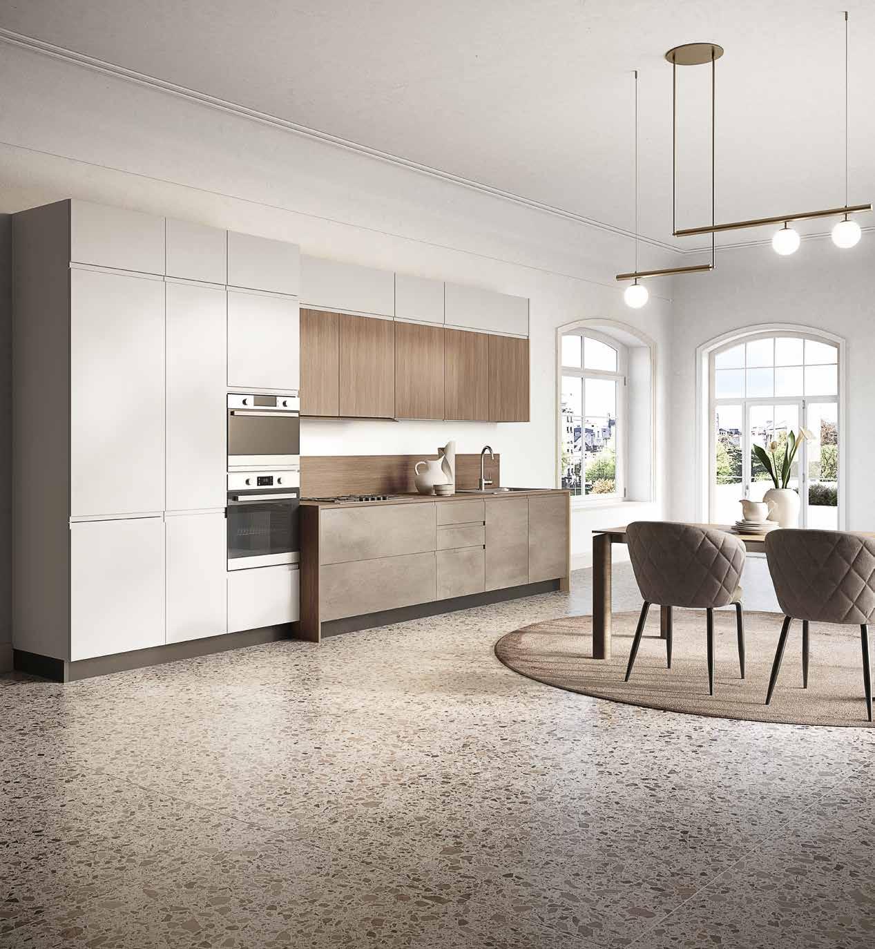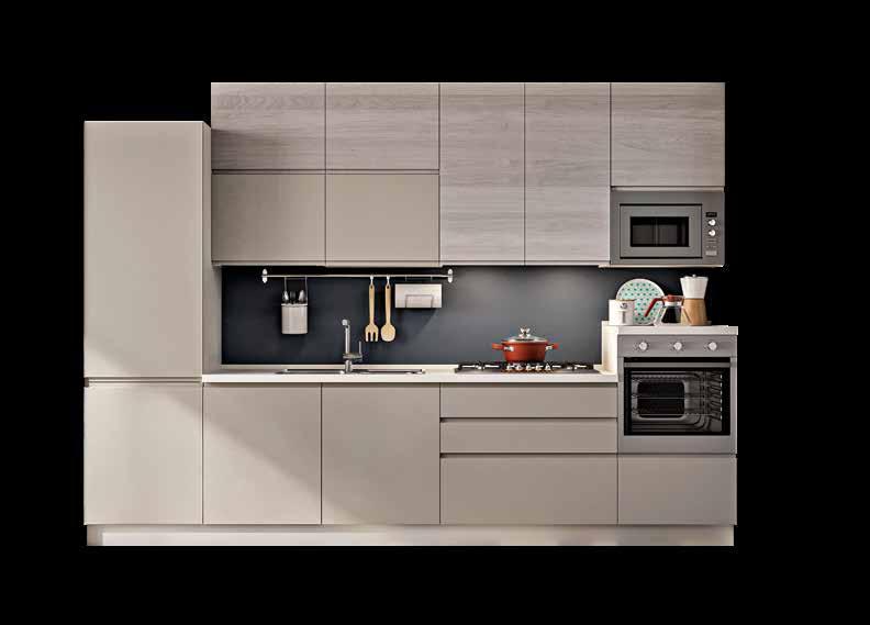 Cucina componibile in finitura beige cumino, rovere anice e resina dust. Disponibile in 9 colori. / 162,91 € AL MESE