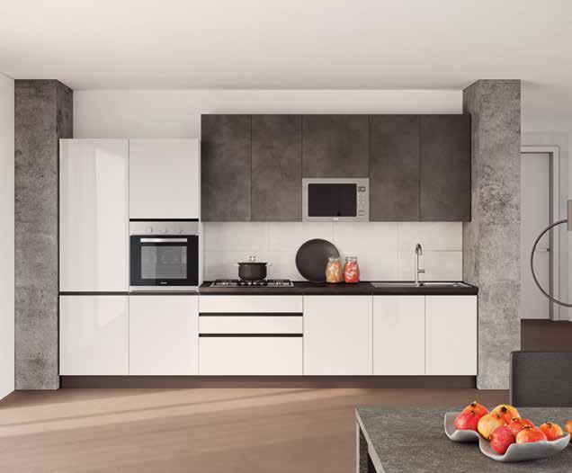 3. Nohara cucina come foto L 360 P 31/60 H 242 cm. Completa di elettrodomestici: frigo, forno, microonde, piano cottura, lavastoviglie, cappa e lavello. Disponibile in 17 colori. / 118,88 € AL MESE