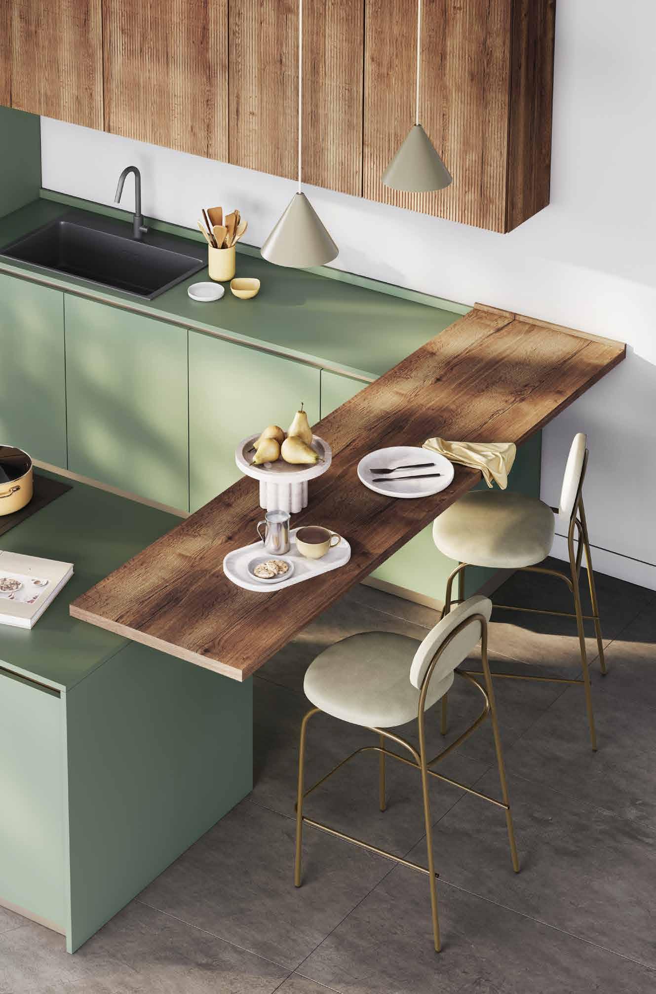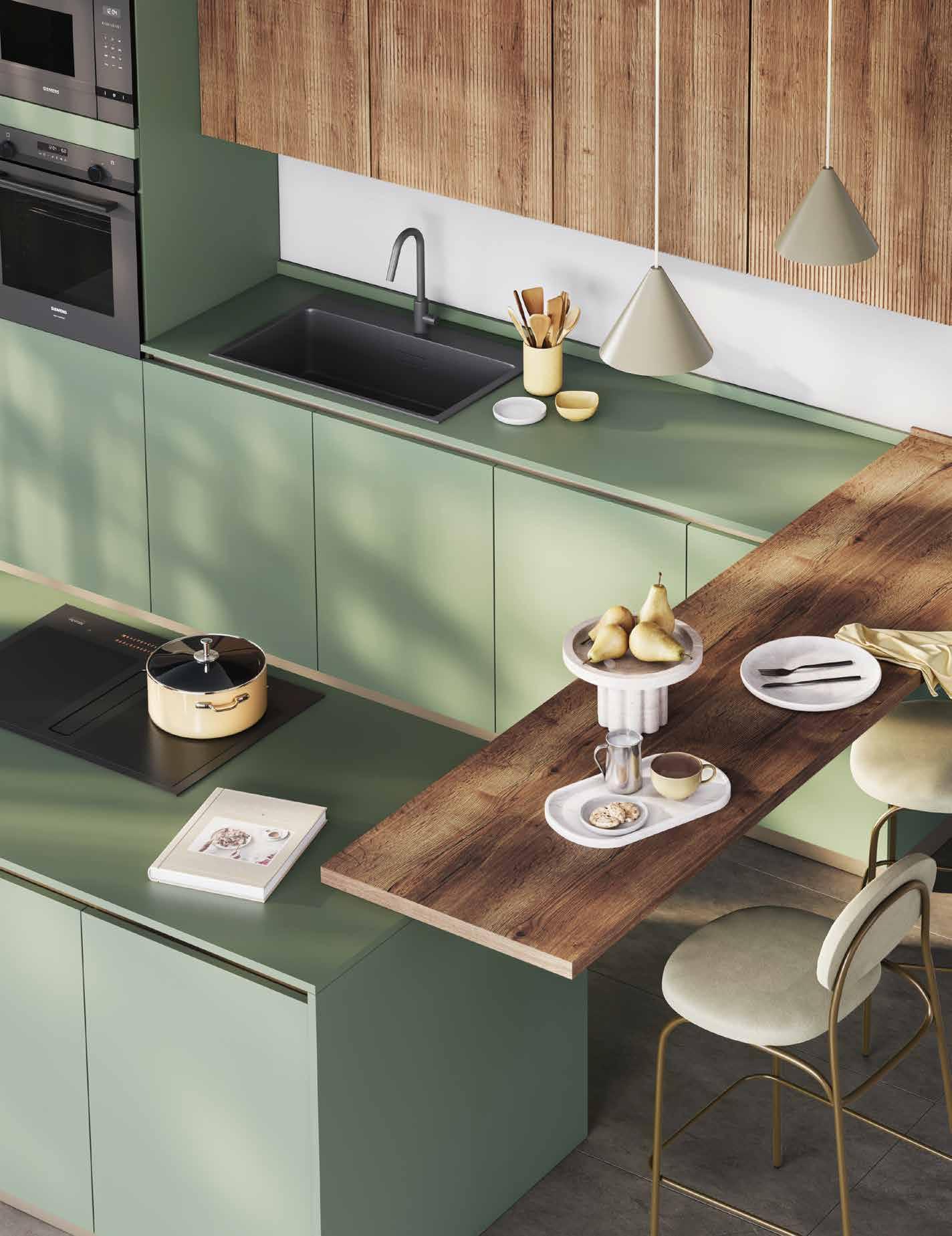 componibile in finitura verde oliva, muschio opaco e rovere tabacco. Disponibile in 31 colori. / 139,74 € AL MESE CUCINA