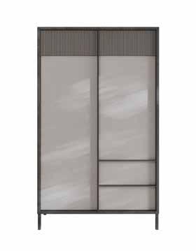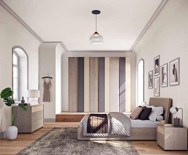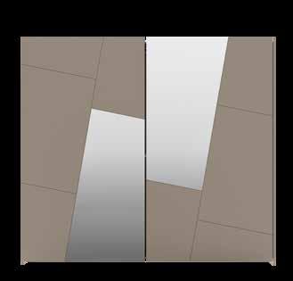 1. Abony armadio L 272 P 61 H 245 cm, in finitura grigio Londra e specchi fumé. Disponibile in 4 colori. / 2. Auki letto matrimoniale L 175 P 210 H 111 cm, con contenitore, in tessuto grigio. Disponibile in 147 colori. / 3. Abony comodino in finitura grigio Londra. Disponibile in 4 colori.