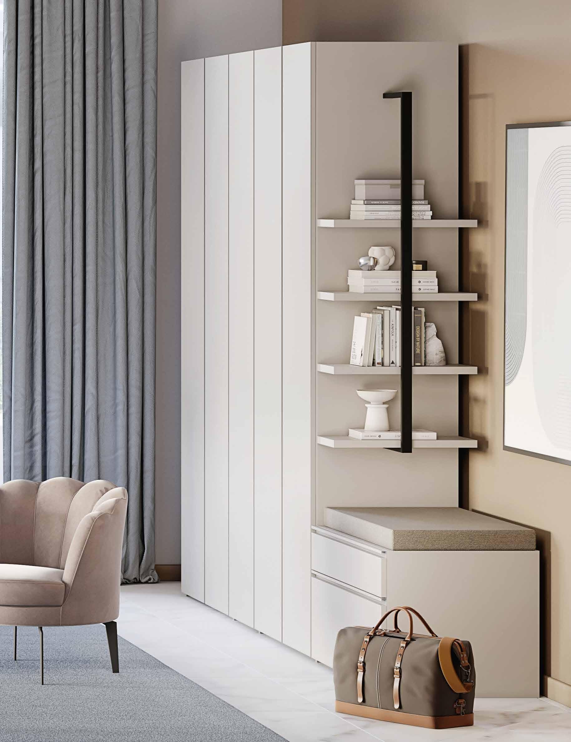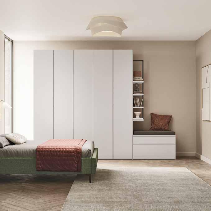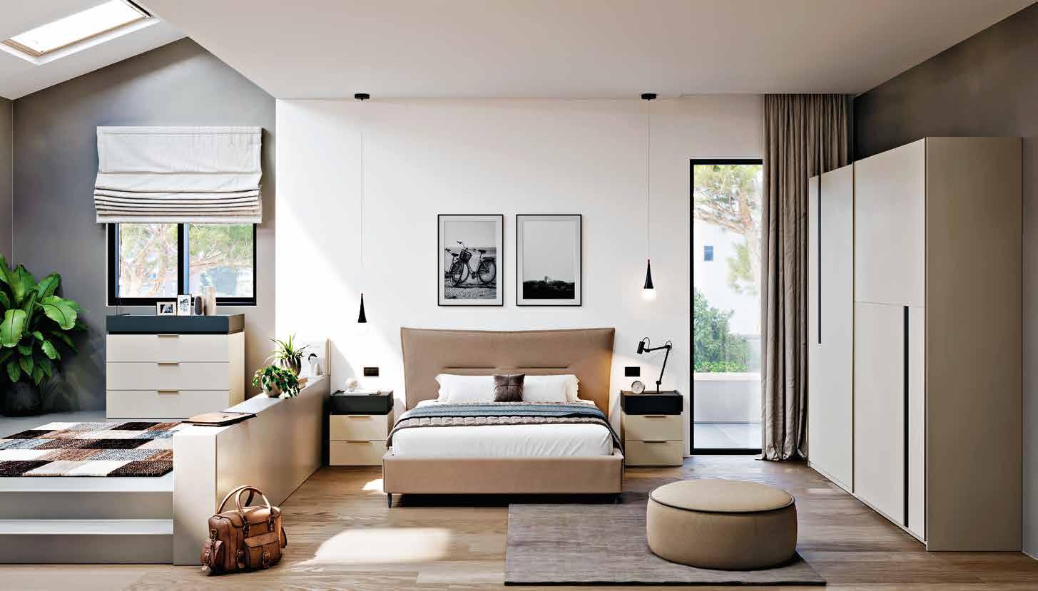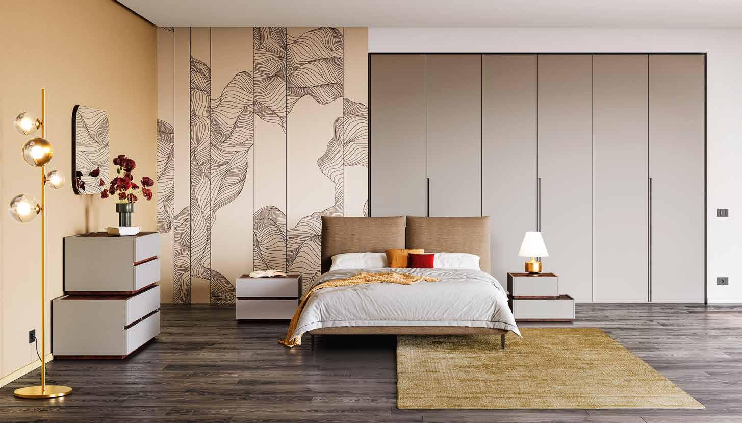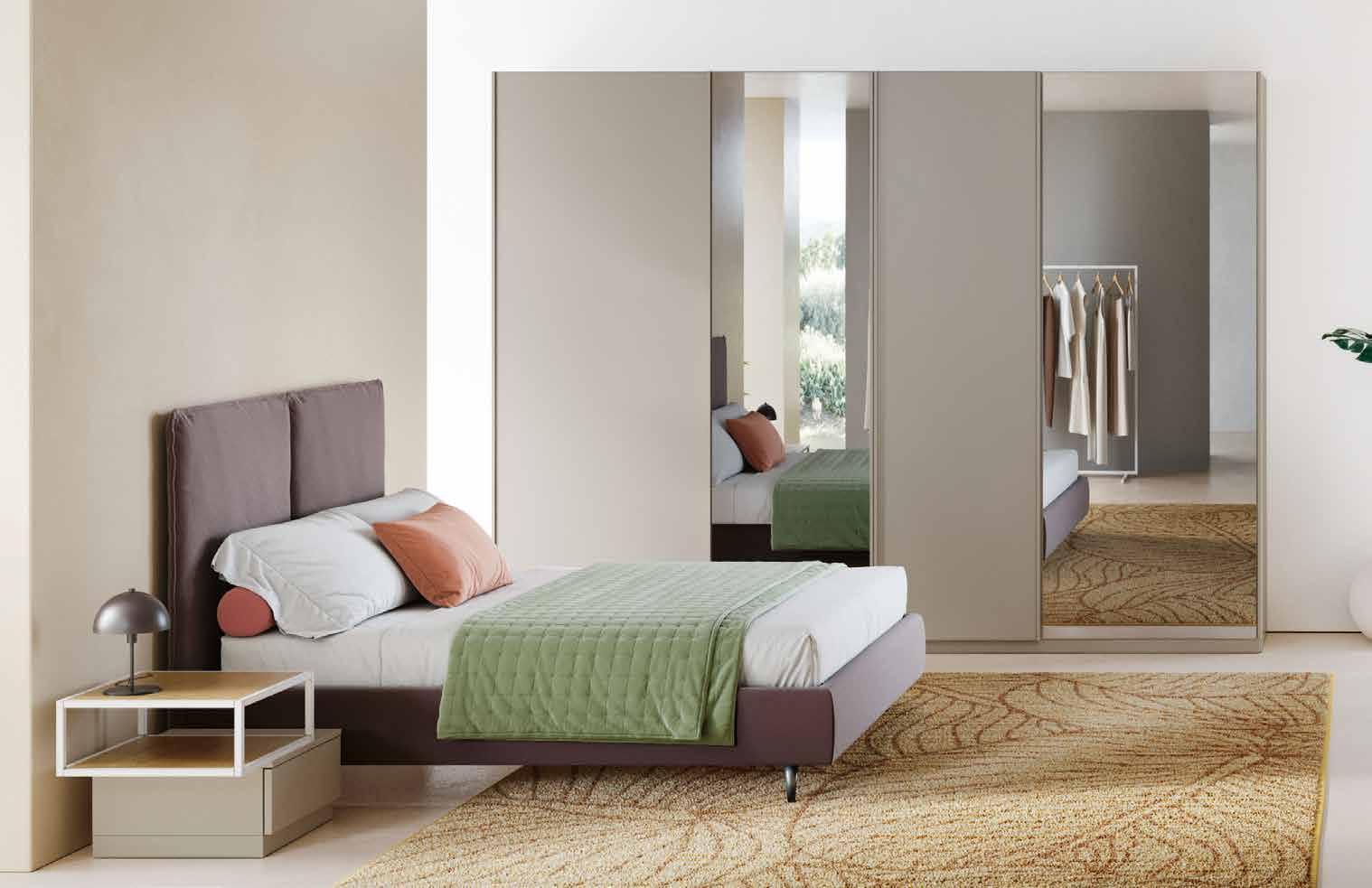 Brisbane camera composta da: armadio L 276 P 61 H 246 cm. • Comò • Comodino • Letto matrimoniale con contenitore. Collezione disponibile in 39 colori. / 77,81 € AL MESE