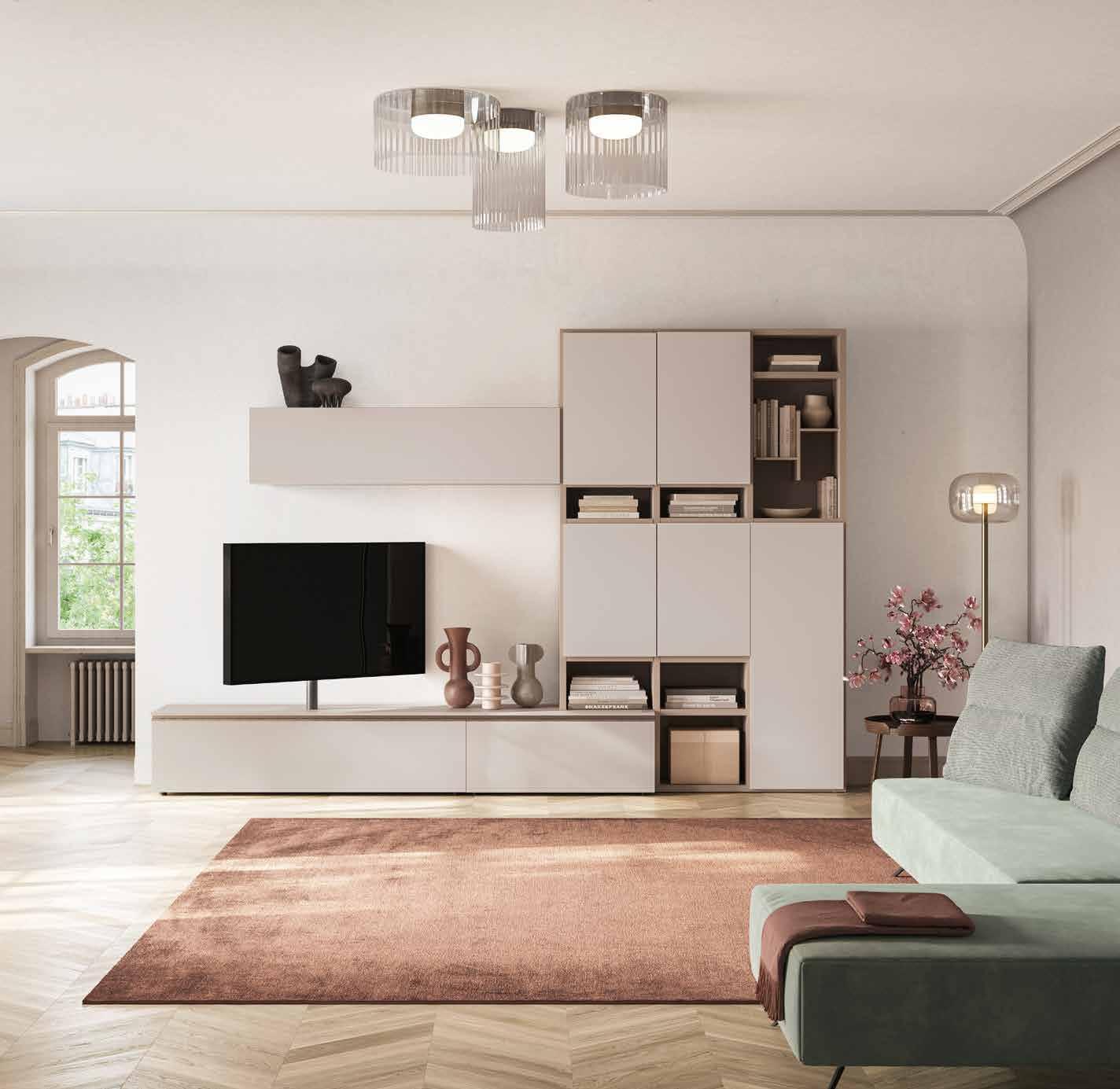 1. India soggiorno componibile L 276 P 30 H 215 cm, in finitura piombo e gesso. Disponibile in 11 colori. 561 € DOPPIO SCONTO IVA 376 € RISPARMI 185 € / 2. Mondy madia L 181 P 42 H 94 cm, in finitura cashmere e legno Mercure. Disponibile in 4 colori. 496 € DOPPIO SCONTO IVA 332 € RISPARMI 164 € / 3. Fanning soggiorno con home office L 335 P 51 H 210 cm, in finitura grigio cenere e legno grigio cannettato. Disponibile in 10 colori. 1.376 € DOPPIO SCONTO IVA 922 € RISPARMI 454 € / 4. Pianeta soggiorno componibile L 297 P 58 H 210 cm, in finitura nuvola frassinato, tele e stone grey. Disponibile in 33 colori. 1.895 € DOPPIO SCONTO IVA 1.270 € RISPARMI 625 € / 54,50 € AL MESE