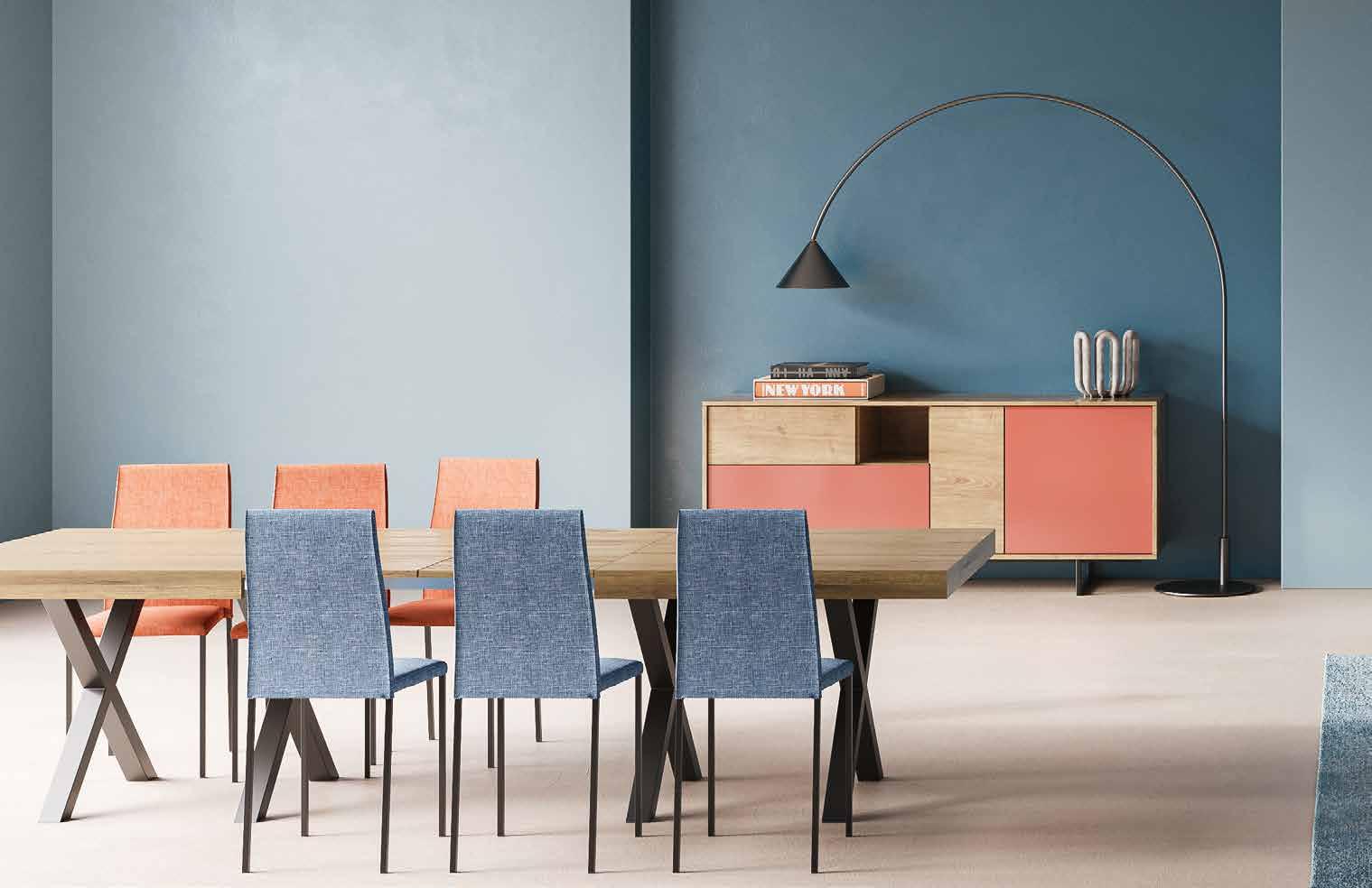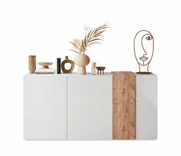 1. Ventas madia 3 ante L 181 P 44 H 86 cm, in finitura in legno Cadice e bianco lucido. Disponibile in 4 colori. 382 € DOPPIO SCONTO IVA 256 € RISPARMI 126 € / 2. Fox sedia con struttura in metallo e seduta in tessuto. Disponibile in 4 colori. 149 €