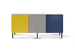 Madia L 180 P 43 H 85 cm in finitura miele, alluminio, blu navy e nuvola frassinato. Disponibile in 33 colori.