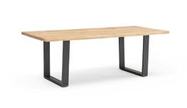 Tavolo L 180 P 100 H 74 cm con piano in legno massello H 4 cm in finitura rovere naturale. Disponibile in 18 colori.