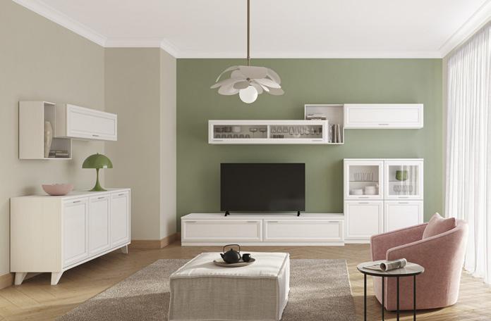 Soggiorno componibile L 360 P 60 H 205 cm, in finitura bianco frassinato. Madia L 185 P 52 H 92 cm. 813 € -40% 488 € Collezione disponibile in 4 colori.