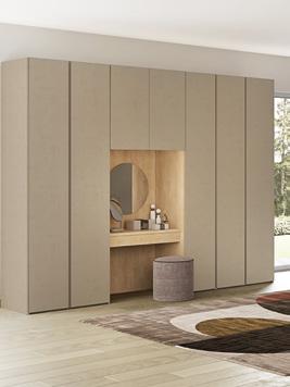 Armadio componibile L 334 P 61 H 258 cm con modulo vanity integrato. • Comodino 507 € -40% 304 € • Testiera con librerie integrate L 360 P 32 H 120 cm, in tessuto e finitura legno. Disponibile in 49 colori. 2.399 € -40% 1.439 €