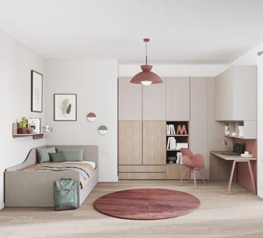 Armadio componibile L 289 P 61 H 260 cm. • Armadio a ponte con libreria L 180 P 48 H 260 cm. 1.859 € -40% 1.115 € / 47,85 € AL MESE • Scrivania 596 € -40% 358 € • Letto a una piazza e mezza con contenitore. 1.445 € -40% 867 € • Cameretta in finitura tortora, legno arena, cotone e mattone. Collezione disponibile in 27 colori.