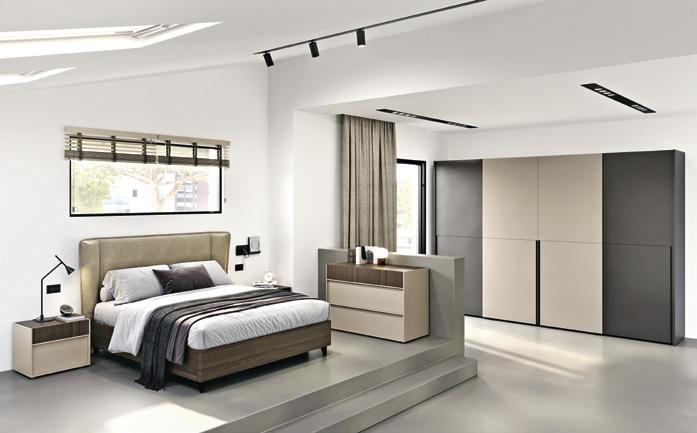 Armadio componibile L 367 P 61 H 256 cm. • Comò 871 € -40% 523 € • Comodino 379 € -40% 227 € • Camera in finitura grigio cenere, visone e noce moro. Collezione disponibile in 21 colori. • Letto matrimoniale con contenitore, giroletto in finitura noce moro e testata in tessuto beige. Disponibile in 134 colori. 1.768 € -40% 1.061 € / 45,53 € AL MESE
