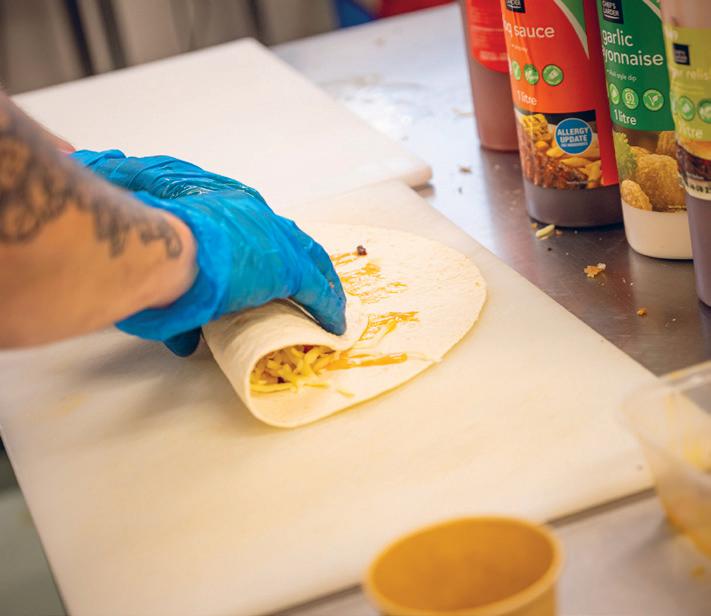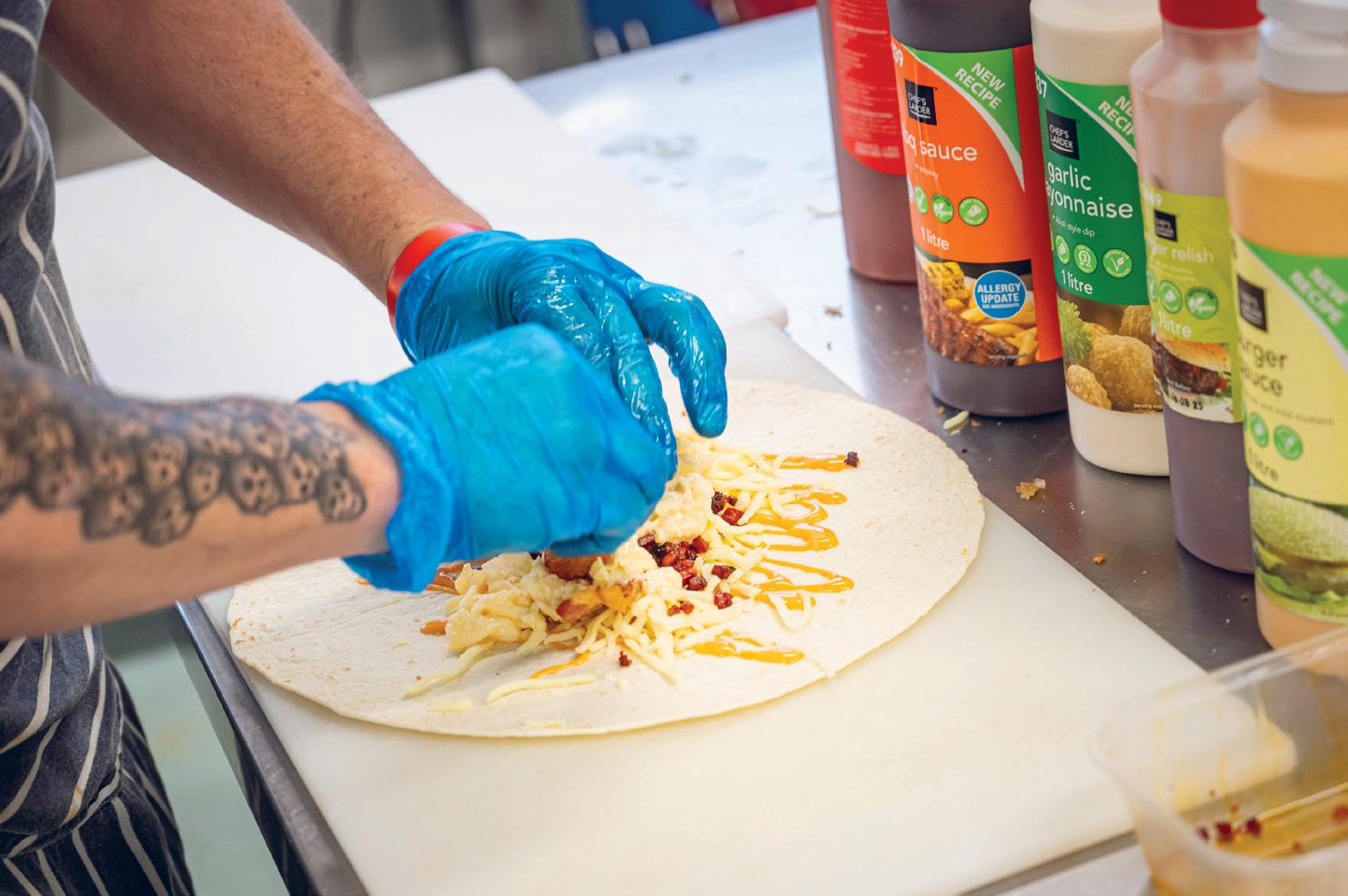 getting creative in the kitchen. “Thankfully, 99% of the time the business just runs without me,” he grins. “I don't do any emails, all the invoicing is done by my Operations Manager. He deals with customer orders, he does all the stock and ordering. All I do is interfere, as the team call it!”