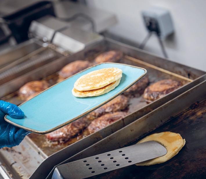 He also uses Booker’s staple, topquality ingredients to create stunning salads. “Our sea spray turquoise plates are ordered from Booker and we use Booker's Parmesan cheese and Chicken Supremes, Booker's bread that we've made into croutons, Romaine lettuce – it's taking simple ingredients and making products look wow.”