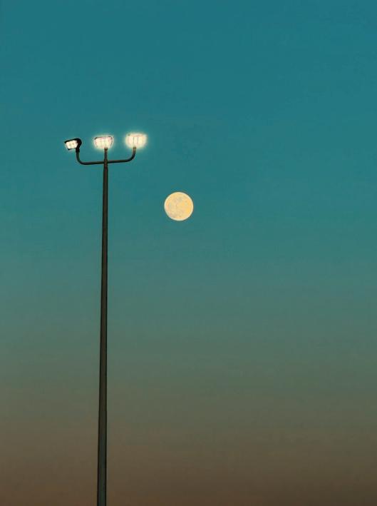 “Quiet night. The tall moon plods alone along the deserted beach. A crowd of curious stars watch and sigh.”