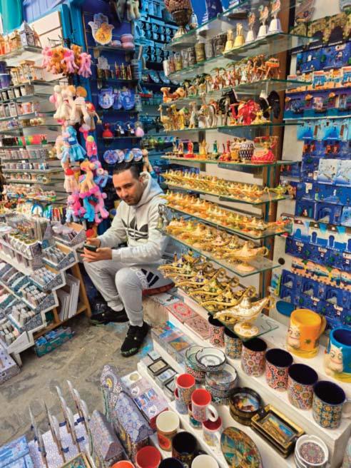 The streets are lined with colour that can be touched. Rugs spill outward from small shops like an exotic experience. Shawls and blankets hang in layers of crimson, saffron, indigo, and earth tones so rich they seem to hum a lullaby beyond the reach of a rainbow. Leather bags, belts, and slippers rest patiently, their surfaces burnished by the hands of a skilled craftsman. Ceramics, metalwork, and carved wood catch the light, not with the shine of factories, but with the quiet confidence of things made slowly.