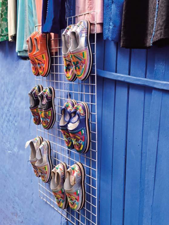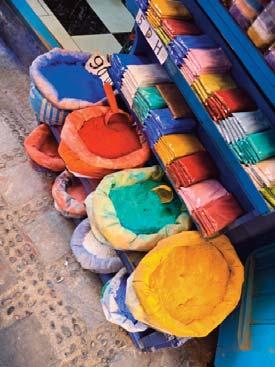Walking through the Blue City, it would be easy to think that the colour from the small shops and street vendors simply magically appears and arrives fully formed, waiting politely to be admired and purchased. Displayed between the blue doors, windows and stairways is another visual language entirely, one spoken by eyes and hands.