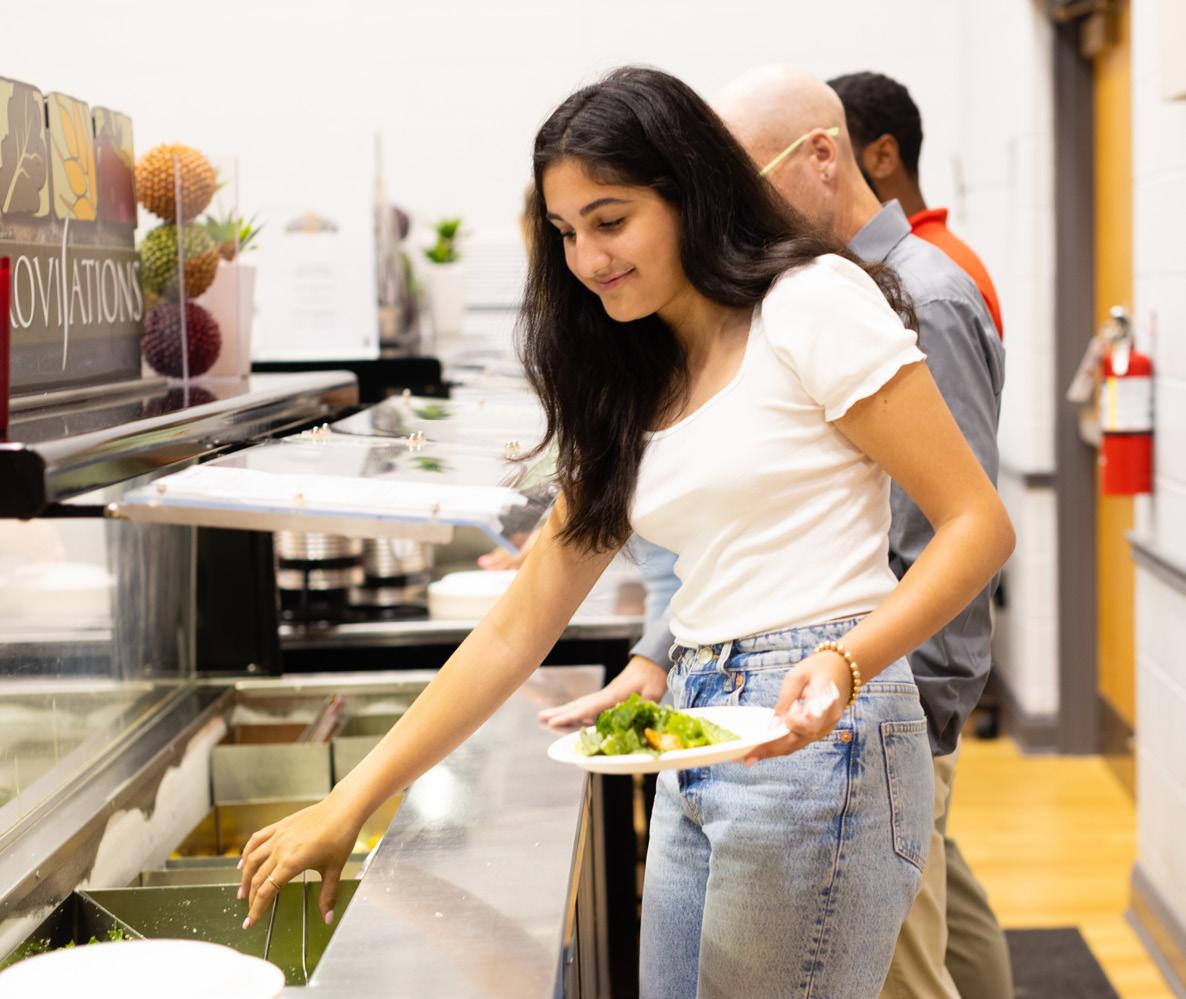 Lunch is provided by SAGE Dining Services and features a hot entrée each day in addition to salads, sandwiches, fresh fruit, and a dessert.
