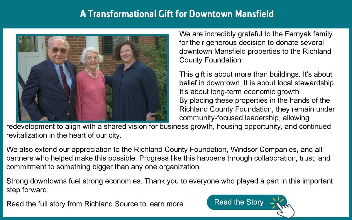 Through the collective efforts of the Richland Area Chamber & Economic Development, Richland Community Development Group, and the Mansfield-Richland Area Educational Foundation, 2025 was marked by expanded partnerships, strengthened advocacy, workforce growth, and transformational investment across the county. Throughout the report, we are also pleased to showcase our incredible members and community partners through engaging photography captured at events and milestones across the year, reflecting the energy and collaboration that define our work.