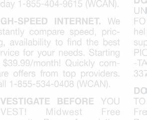 WCAN (WISCONSIN Community Ad Network) and/or the member publications review ads to the best of their ability. Unfortunately, many unscrupulous people are ready to take your money! PLEASE BE CAREFUL ANSWERING ANY AD THAT SOUNDS TOO GOOD TO BE TRUE! For more information, or to le a complaint regarding an ad, please contact The Department of Trade, Agriculture & Consumer Protection 1-800-422-7128. (WCAN).
