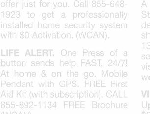 UP TO $15,000 OF GUARANTEED LIFE INSURANCE! No medical exam or health questions. Cash to help pay funeral & other nal expenses. Call Physicians Life Insurance Company 844-433-5898 or visit www.Life55plus.infowcp (WCAN).