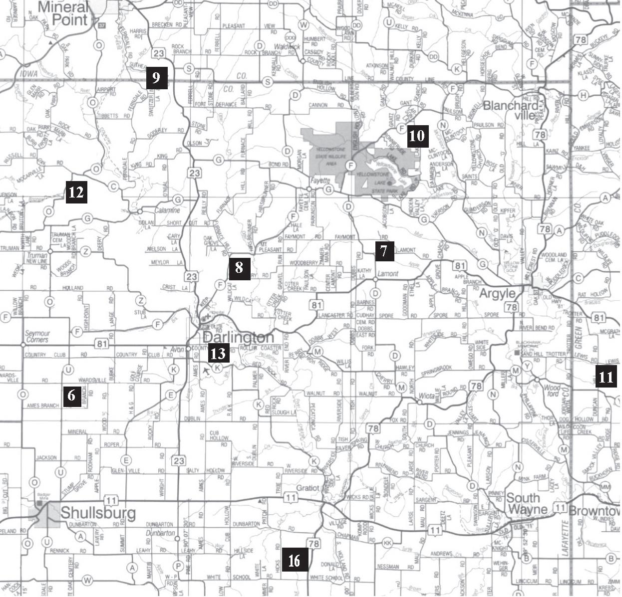 woods and old oak savannah. Find it on County Road F between Darlington and Blanchardville.
