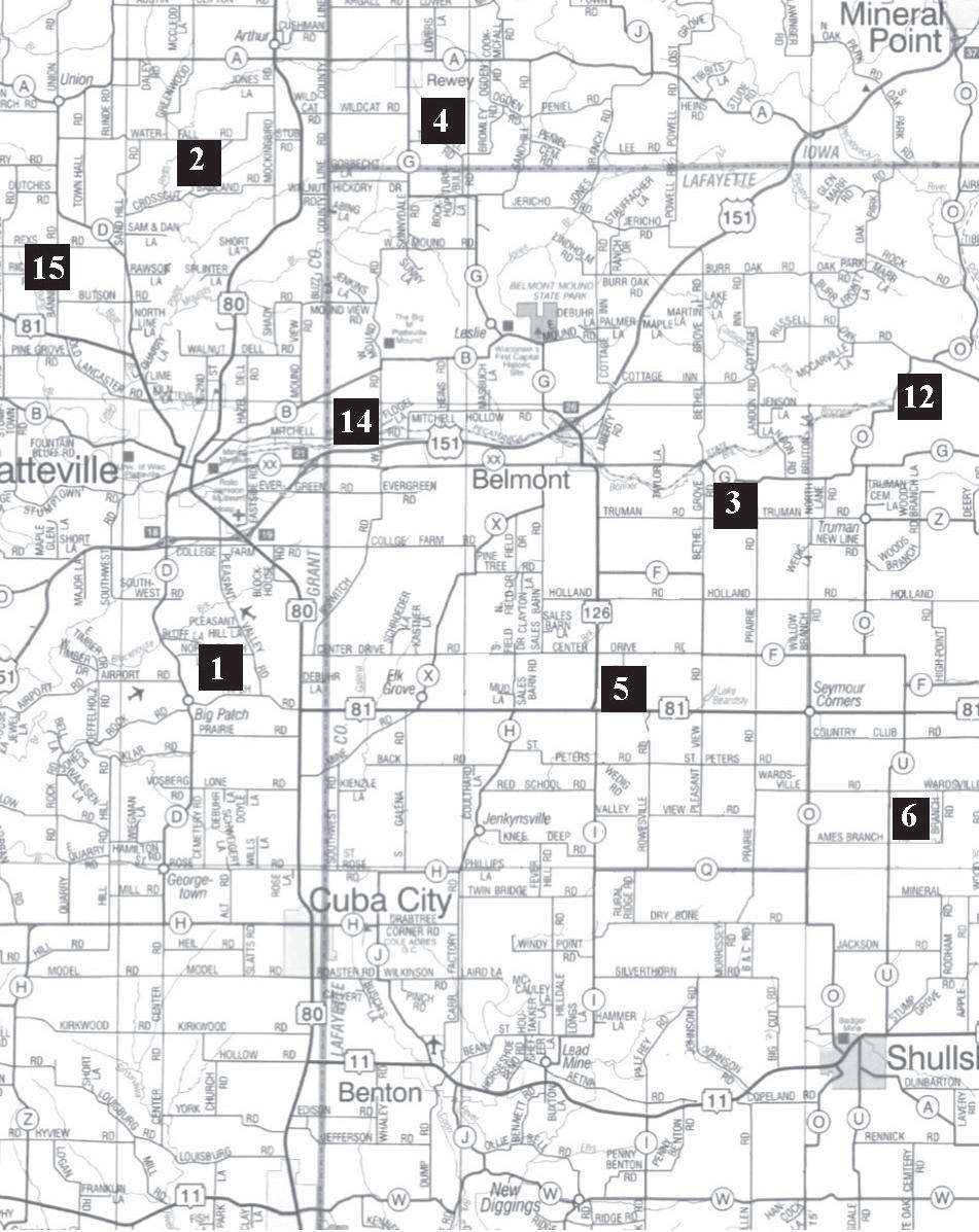 23. Belmont and Pla�eville Mounds, County Hwy. B between Belmont and Platteville.