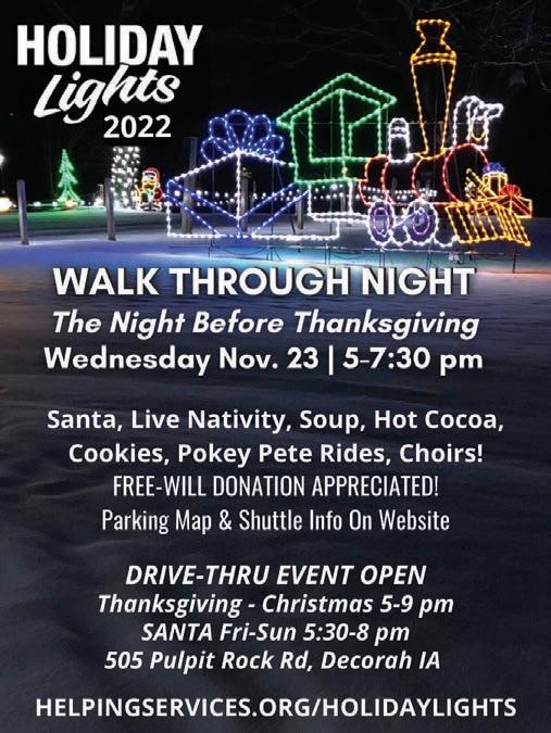 405 N. Marquette Rd. • P.O. Box 97 • Prairie du Chien, WI 53821 Phone 608-326-2457 • www.wi-iashoppingnews.com POSTAL PATRON November 22, 2022 Delivered to over 16,800 homes and businesses each week! Copyright ©2022 Wisconsin - Iowa Shopping News. All rights reserved ECR-WSS PRST STD U.S. Postage Paid PRAIRIE DU CHIEN, WI PERMIT #95 adno=316325 316861 405 N. Marquette Rd. • P.O. Box 97 Prairie du Chien, WI 53821 Phone 608-326-2457 • www.wi-iashoppingnews.com With our sincere thanks for your business, we wish you all a healthy and happy Thanksgiving season. Here’s hoping your holiday is overflowing with delights! adno=315888 adno=316861 THE Sweet TOOTH Downtown Prairie du Chien Santa Shops Small! Stop in or call to order your holiday treats in advance! 608-379-0380 Homemade Chocolates Nostalgic Candies Candy Shop thesweettoothwi.com adno=316690 R&B Treasures Thrift Store 3 Day Black Friday Sales 1200 S. Marquette, PDC Nov 25th & 26st and Monday Nov 28th ½ off everything (except showcase items) Owner Becky Anderson