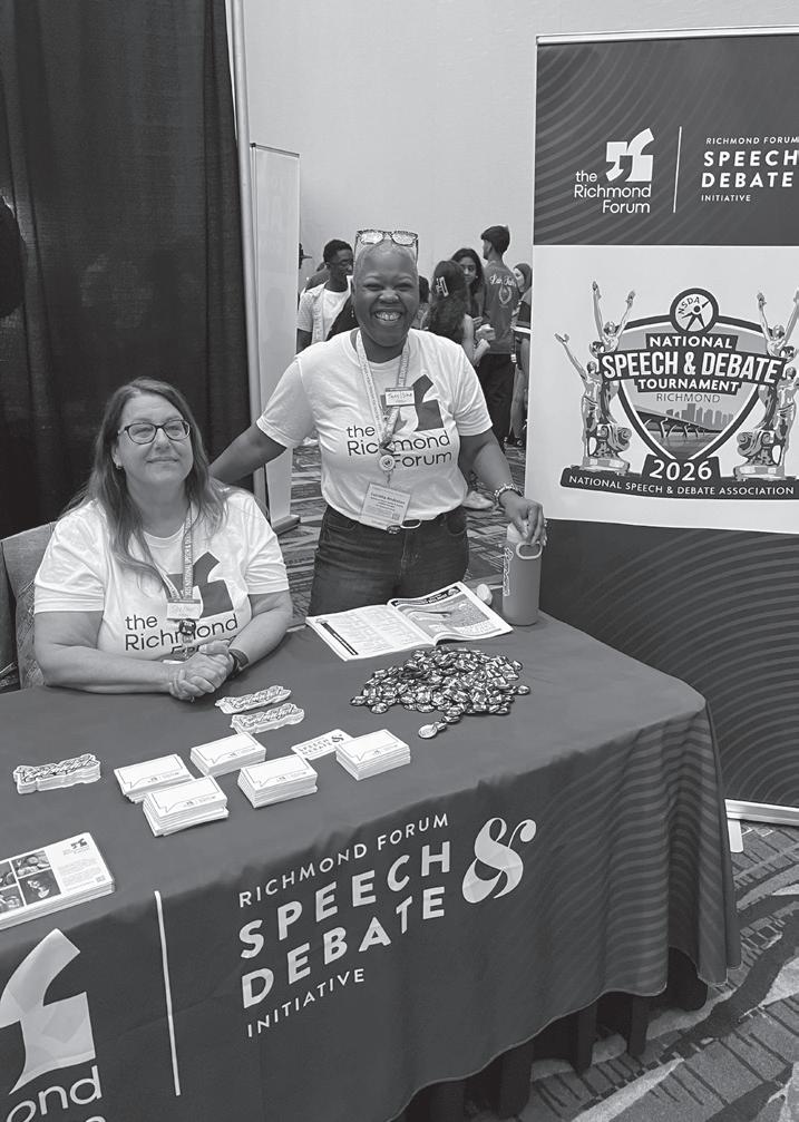 The Richmond Forum Speech & Debate Initiative is leading the local host committee for the 2026 National Speech & Debate Tournament, and we are recruiting volunteers to help Richmond shine. For five days in June, our community will become the national stage for the next generation of voices who care deeply about ideas and who are practicing the habits of thoughtful citizenship.