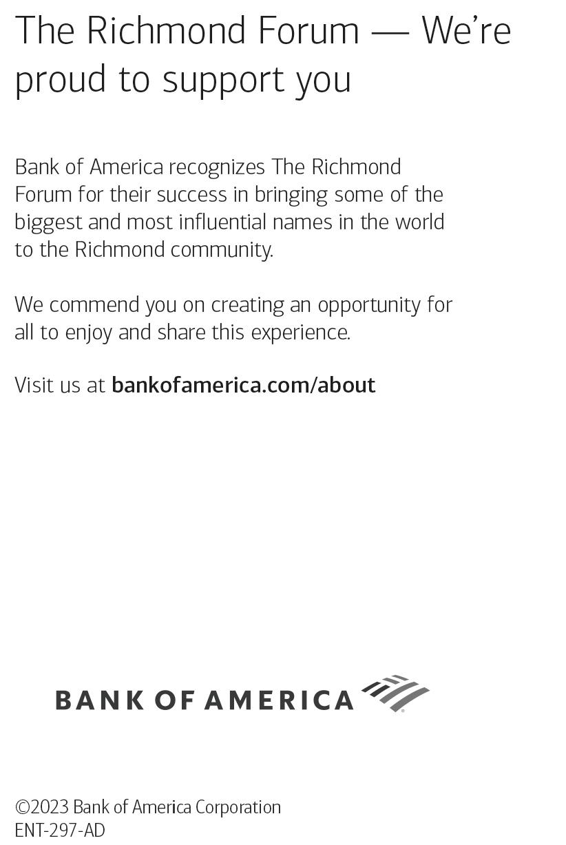 Explore our past speaker archive and share your Forum memories at richmondforum.org/speaker.