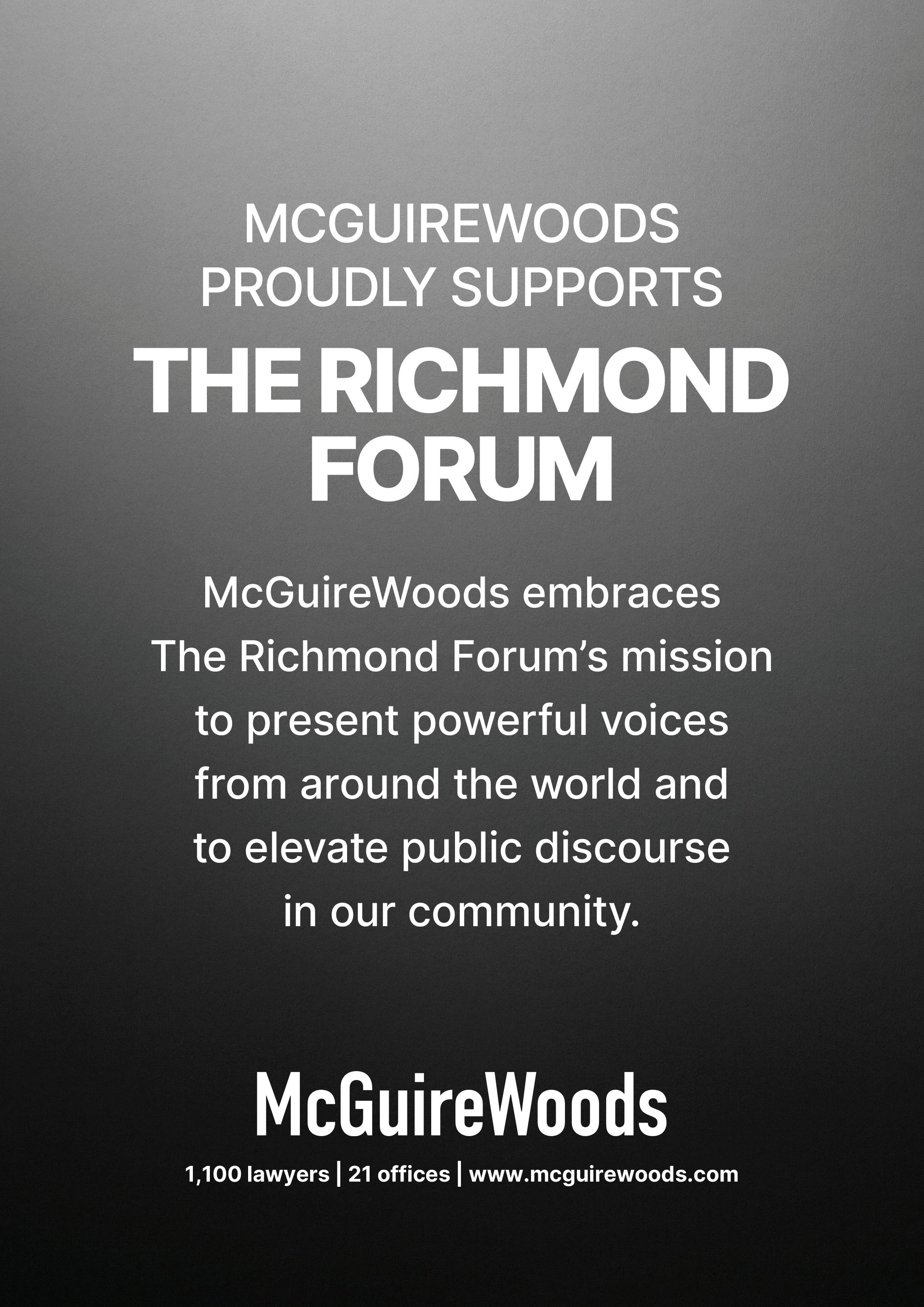 The Richmond Forum is a nonprofit 501(c)(3) educational organization. Tonight’s presentation may not be recorded or photographed by attendees by any means for any purpose.