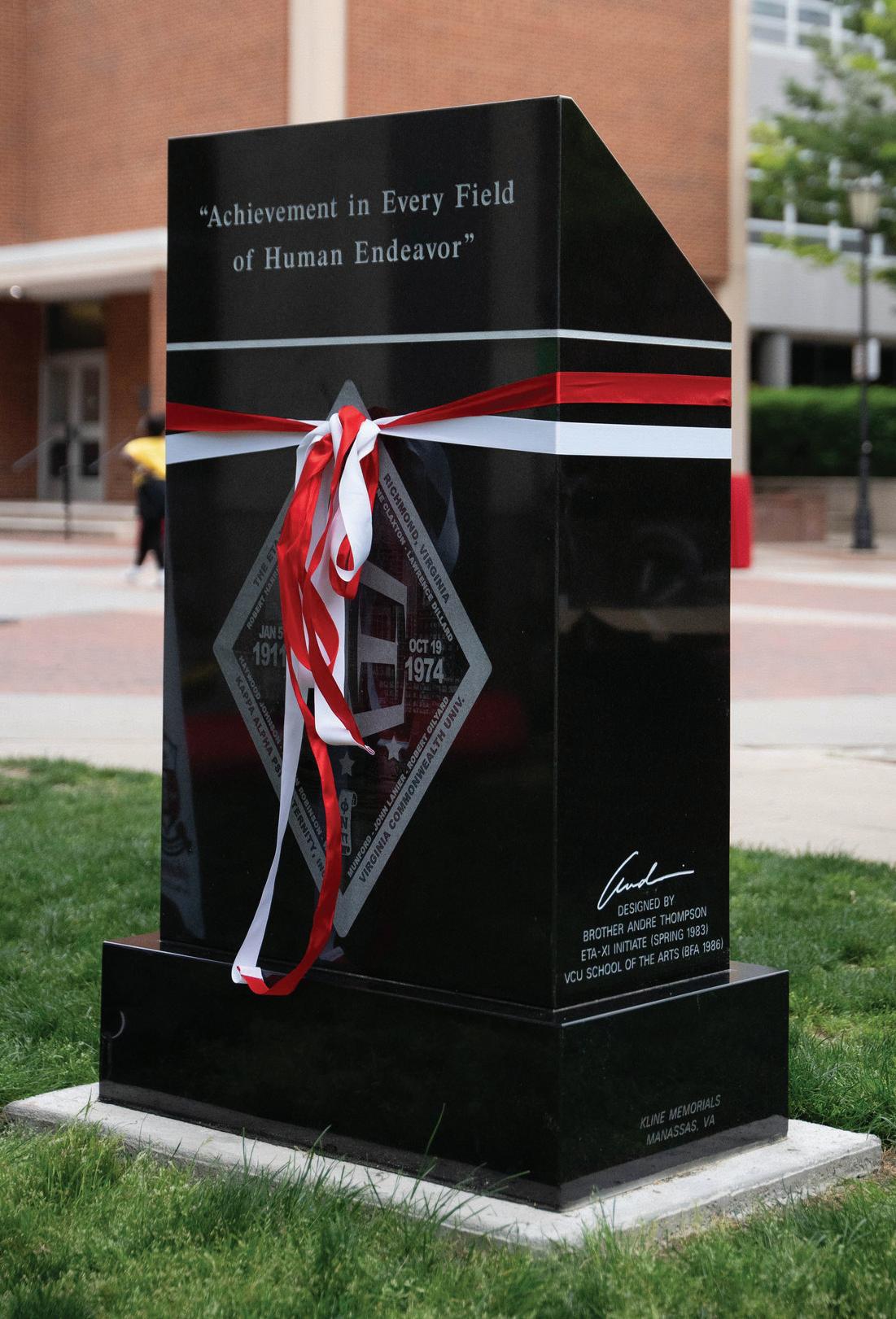 monument now graces Shafer Court — a significant location in its own right – with the unveiling marking the 50th anniversary of the Eta Xi Chapter’s founding on Oct. 19, 1974. The