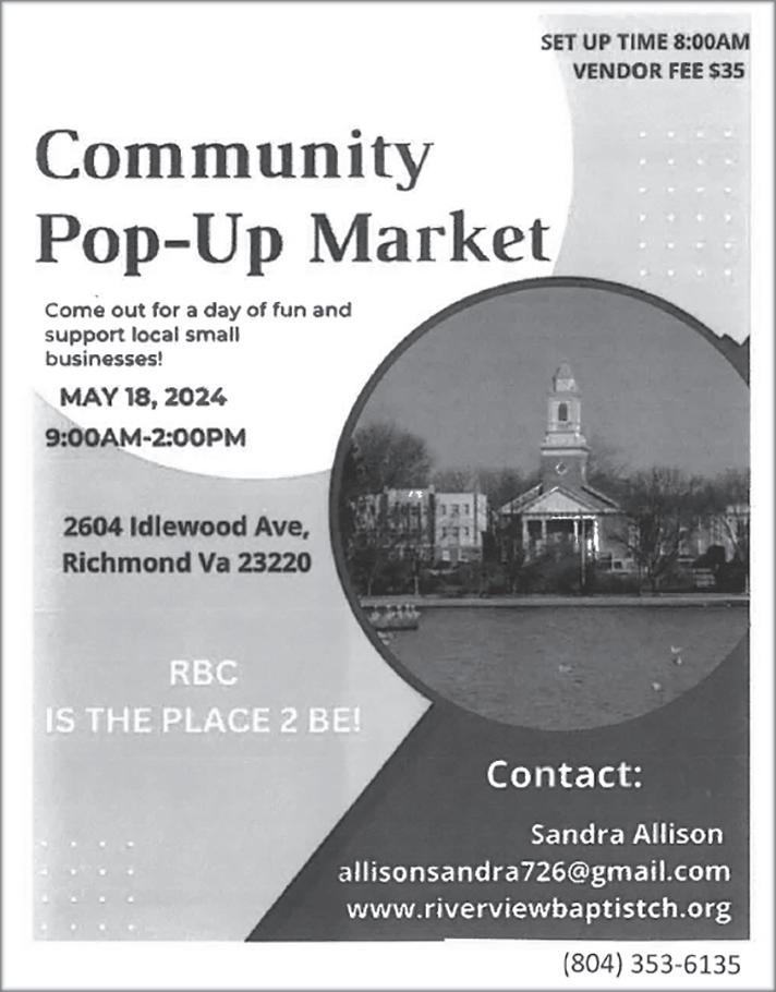 • Thursday, May 16, 1 to 5 p.m. - Henrico Arms Apartments, 1566 Edgelawn Circle.