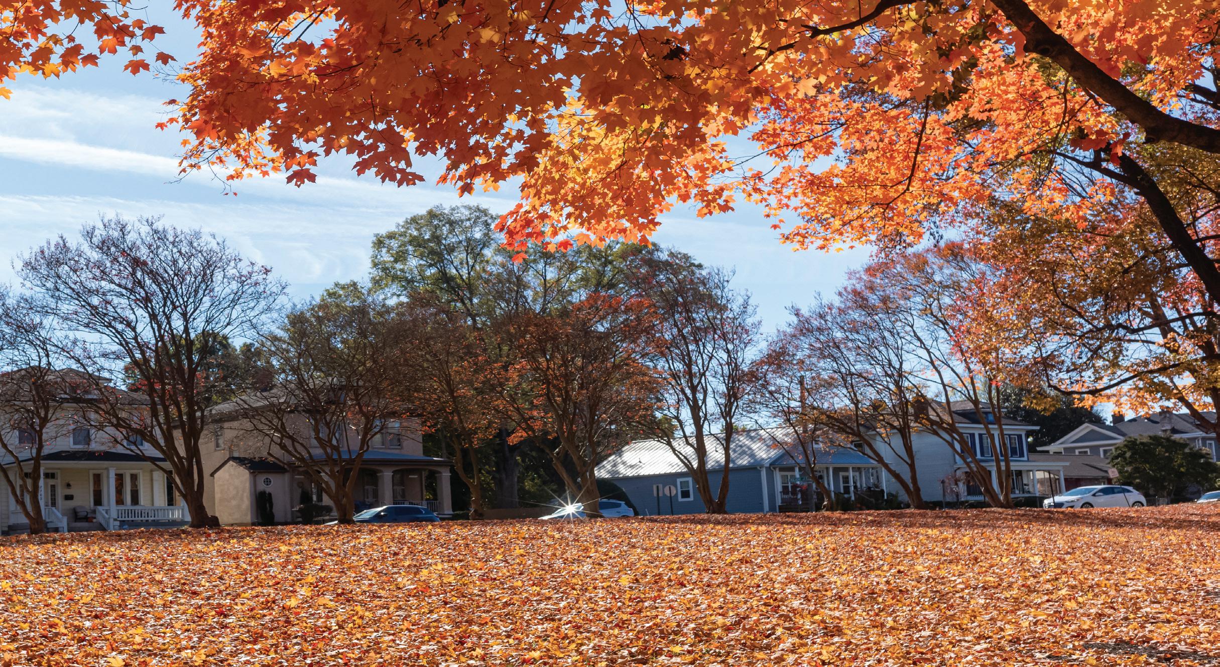 A blanket of golden leaves covers the grounds of St. Elizabeth Catholic Church in North Side, capturing the vibrant beauty of fall foliage. As autumn nears its end in mid-December, the warm temperatures of recent days have allowed for an extended display of seasonal colors.