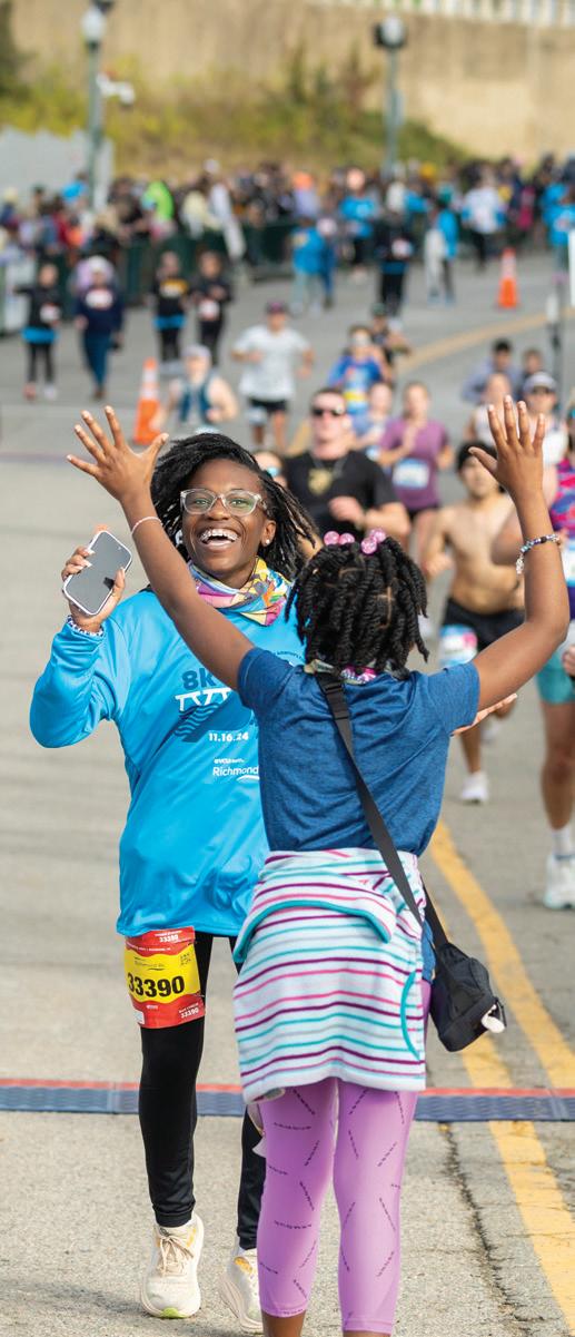 Londyn Jackson, 14, celebrates with her sister, Sydney Jackson, 10, after crossing the finish line of the VCU Health Richmond 8K on Saturday, Nov. 16. Londyn finished with a time of 45:32, earning a top spot in her age group.